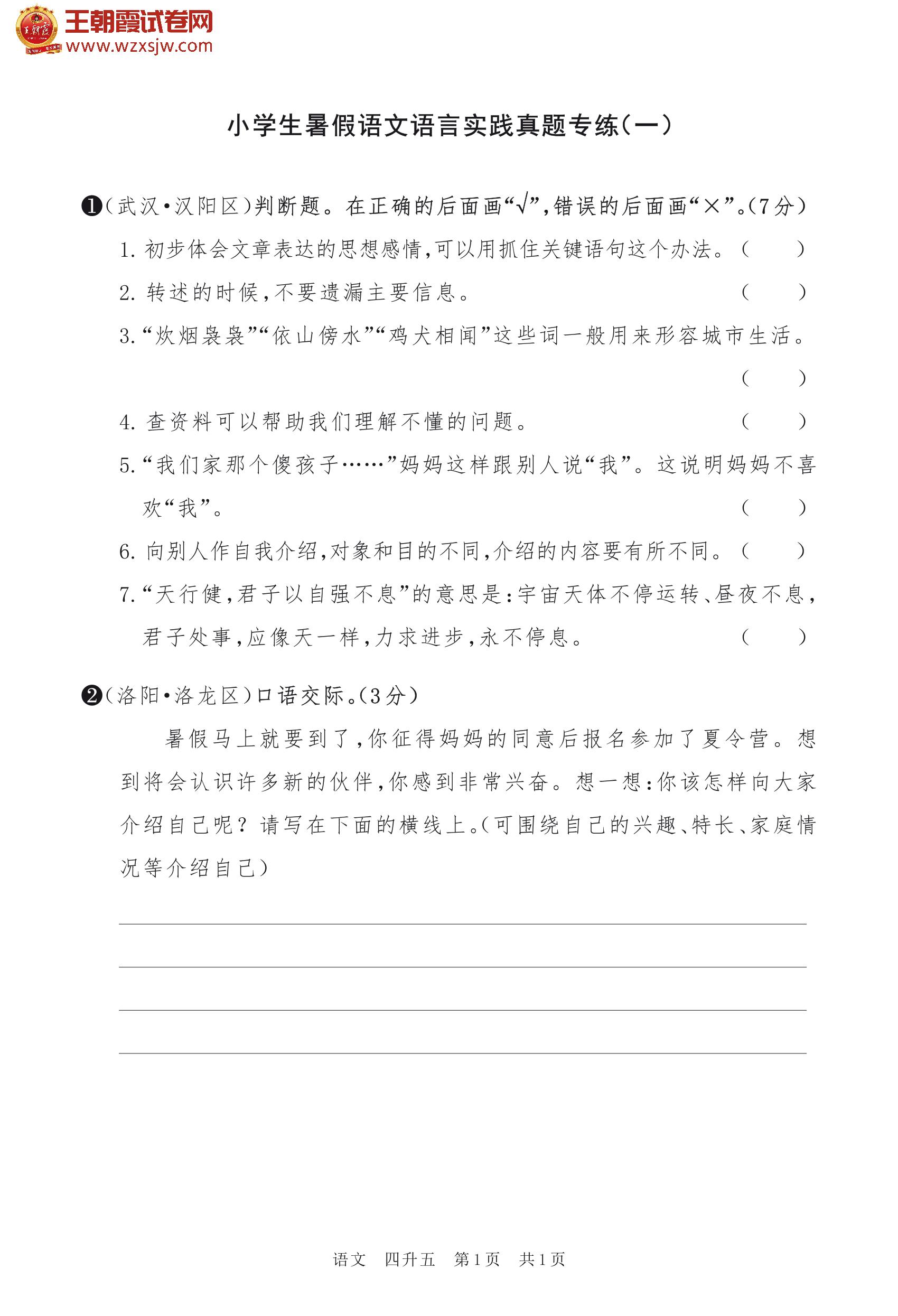 【四升五】小学生暑假语文语言实践真题专练(一)