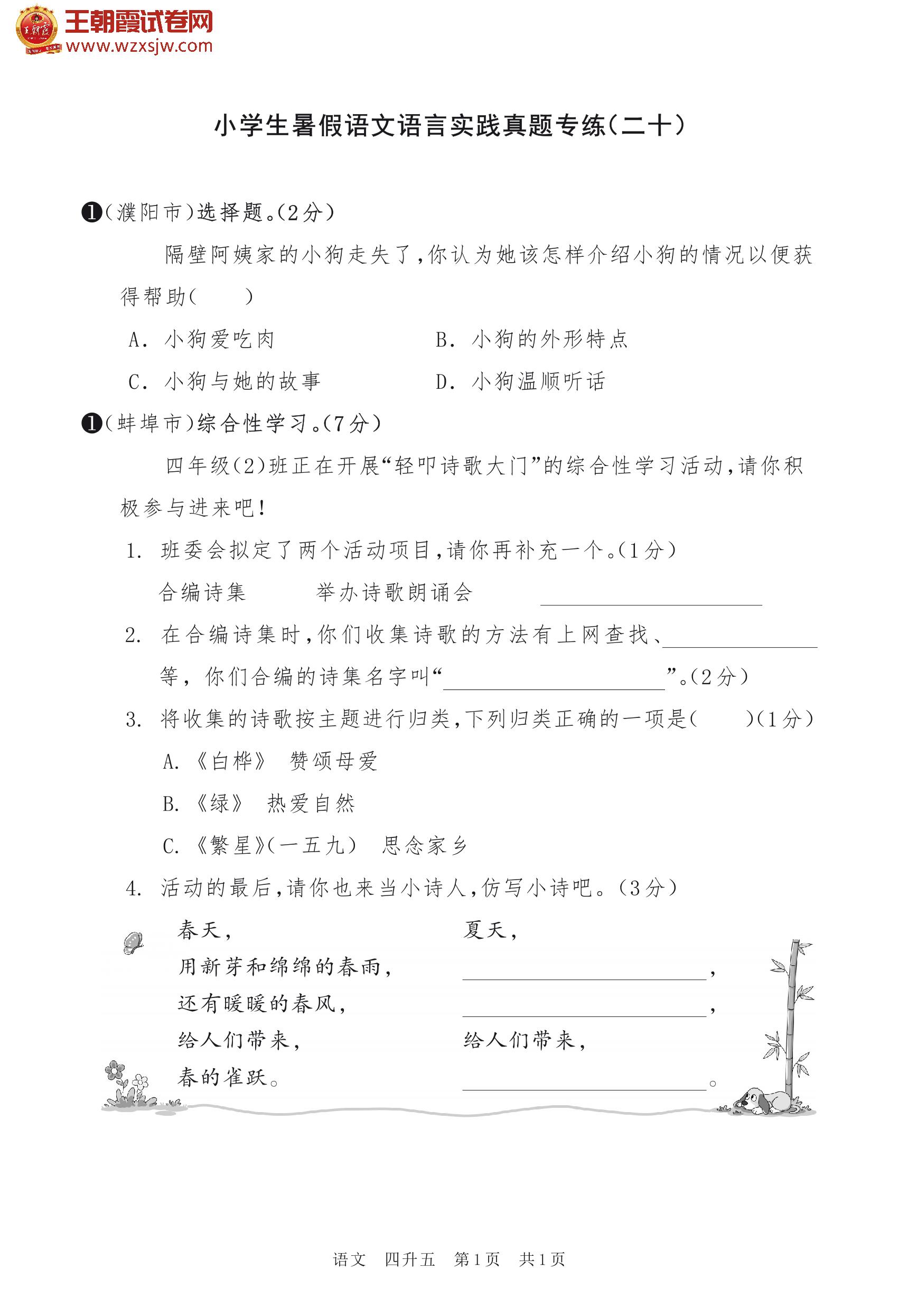 【四升五】小学生暑假语文语言实践真题专练(二十)
