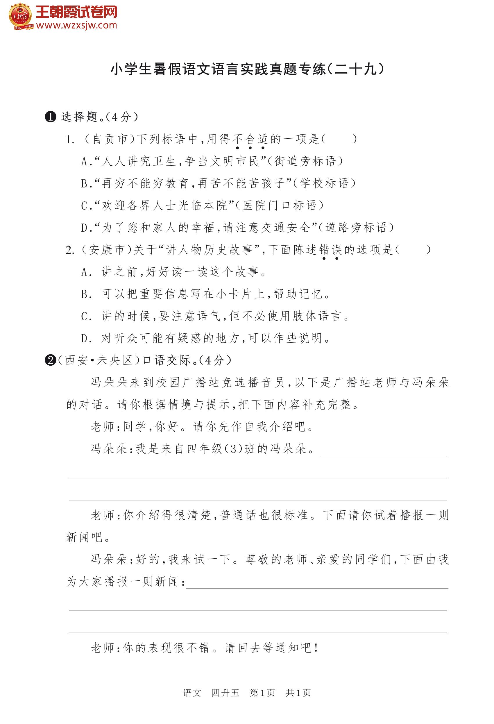 【四升五】小学生暑假语文语言实践真题专练(二十九)