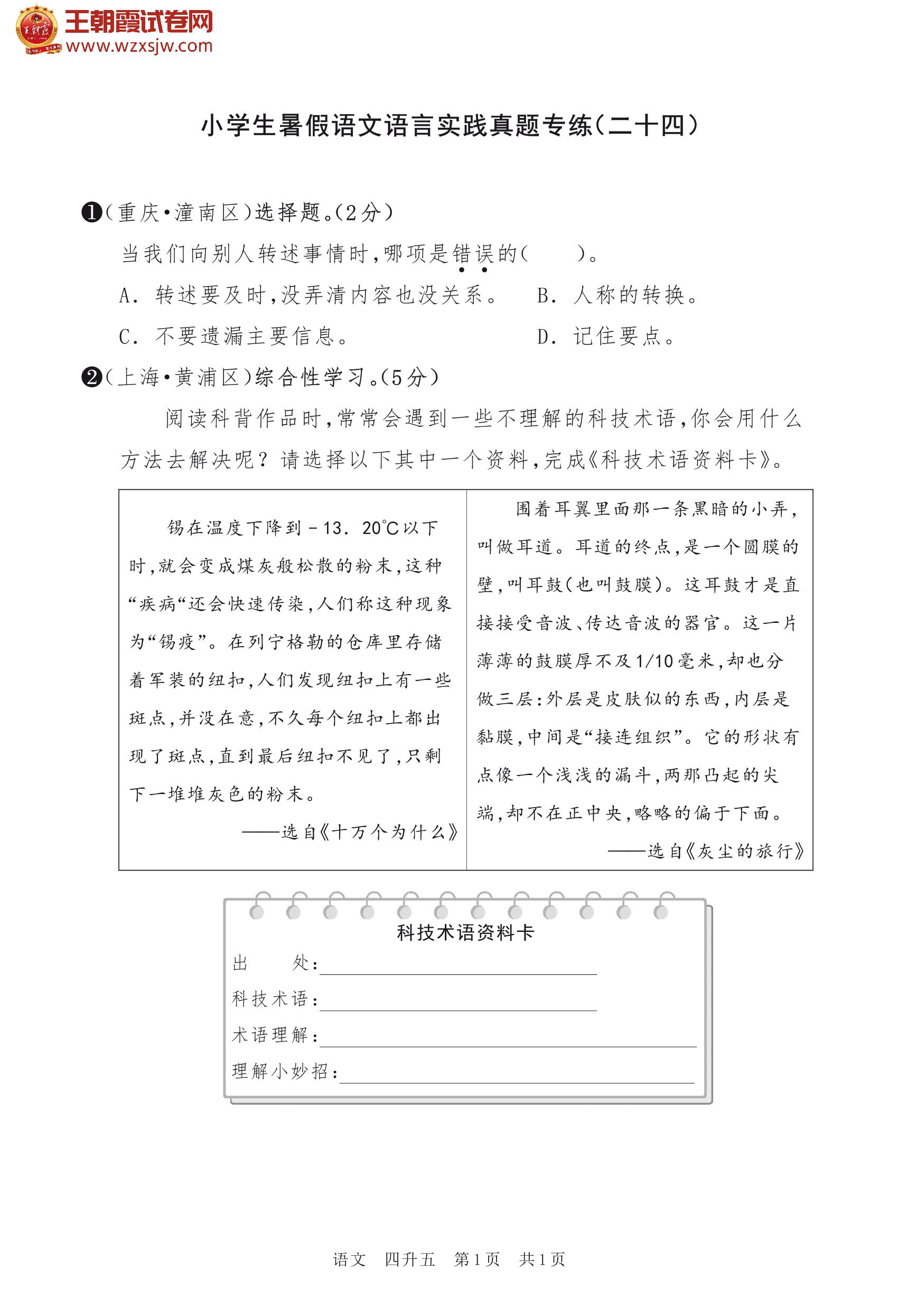 【四升五】小学生暑假语文语言实践真题专练(二十四)