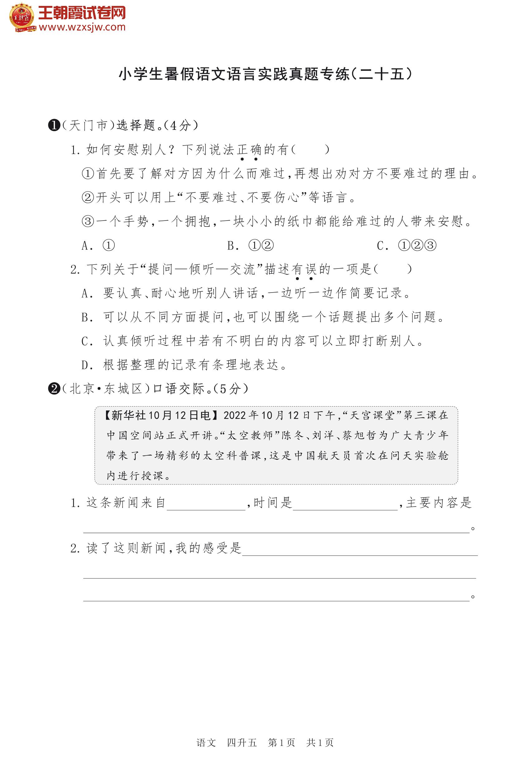 【四升五】小学生暑假语文语言实践真题专练(二十五)
