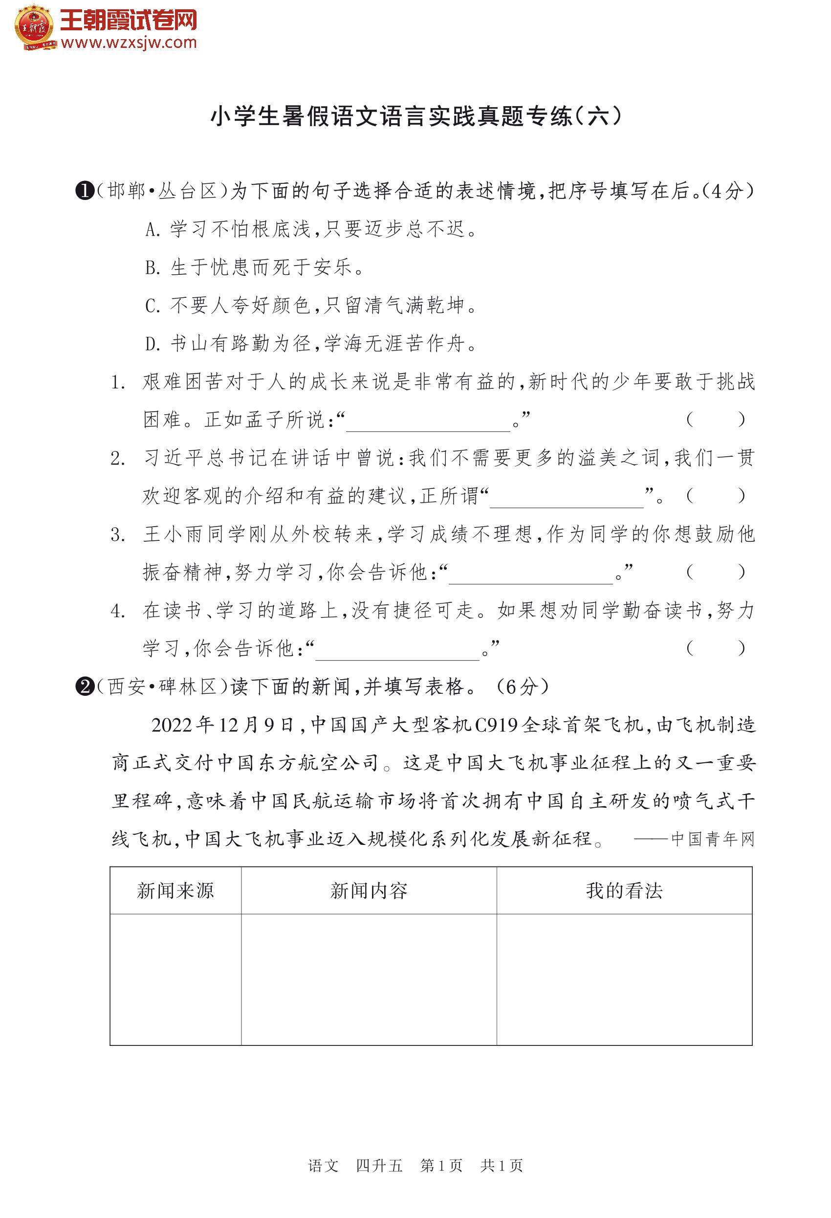 【四升五】小学生暑假语文语言实践真题专练(六)