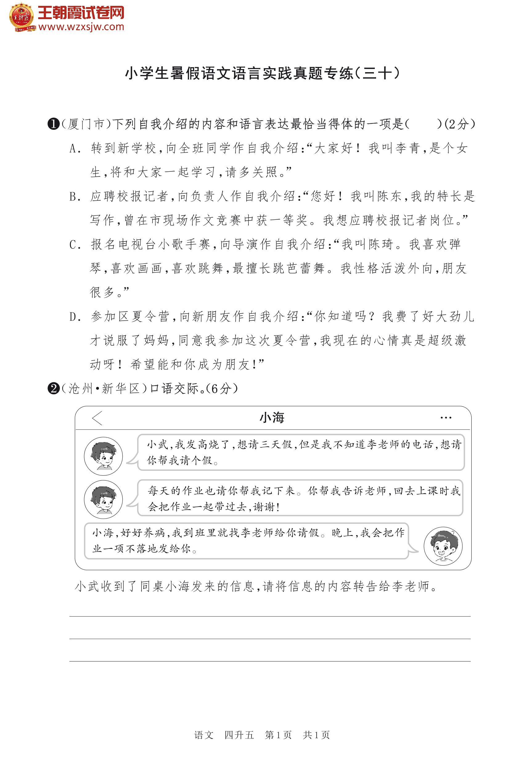 【四升五】小学生暑假语文语言实践真题专练(三十)