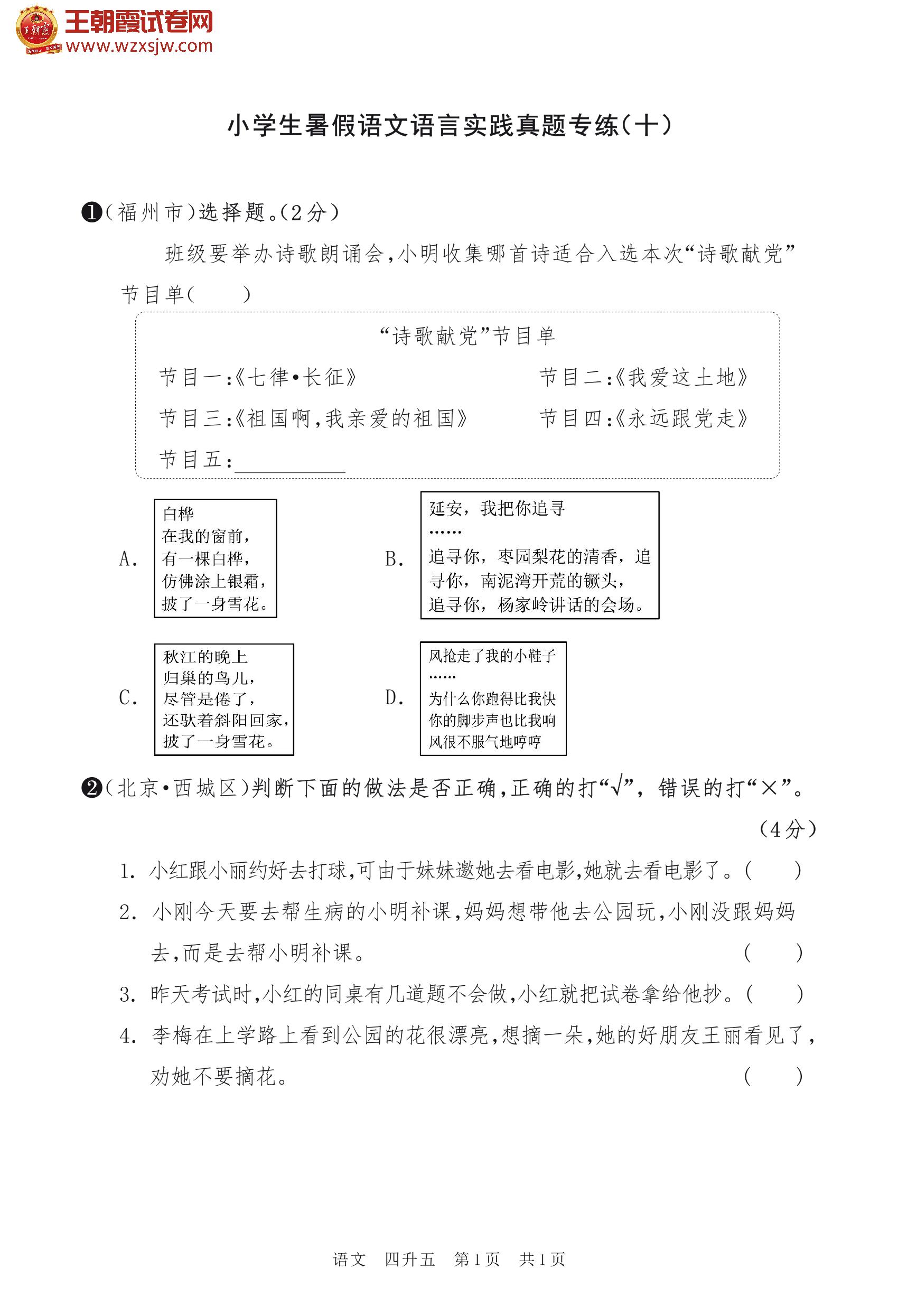 【四升五】小学生暑假语文语言实践真题专练(十)