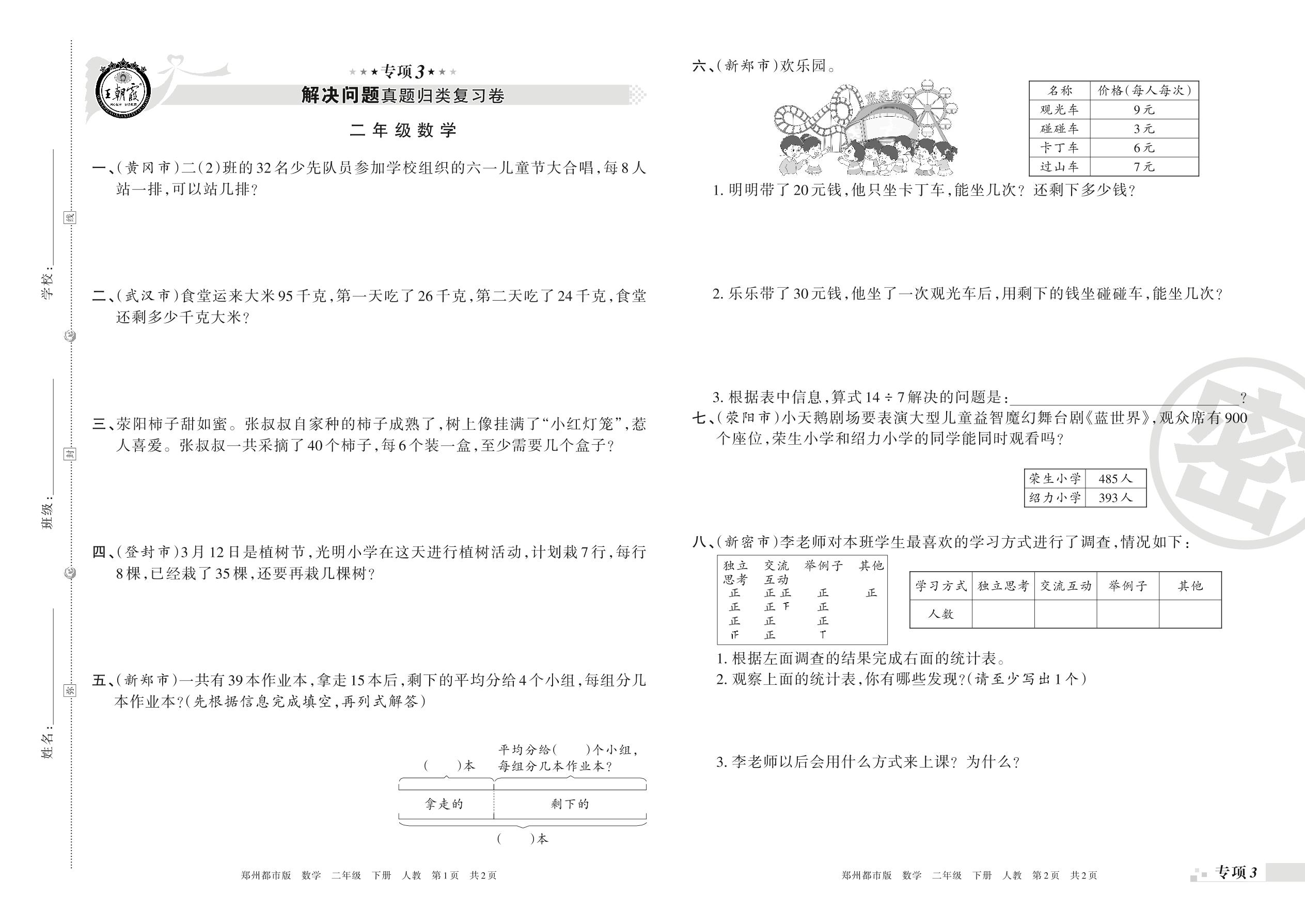 王朝霞期末专项卷——解决问题真题归类复习——生活与数学二年级下册数学(人教版)_R21080382059【0】