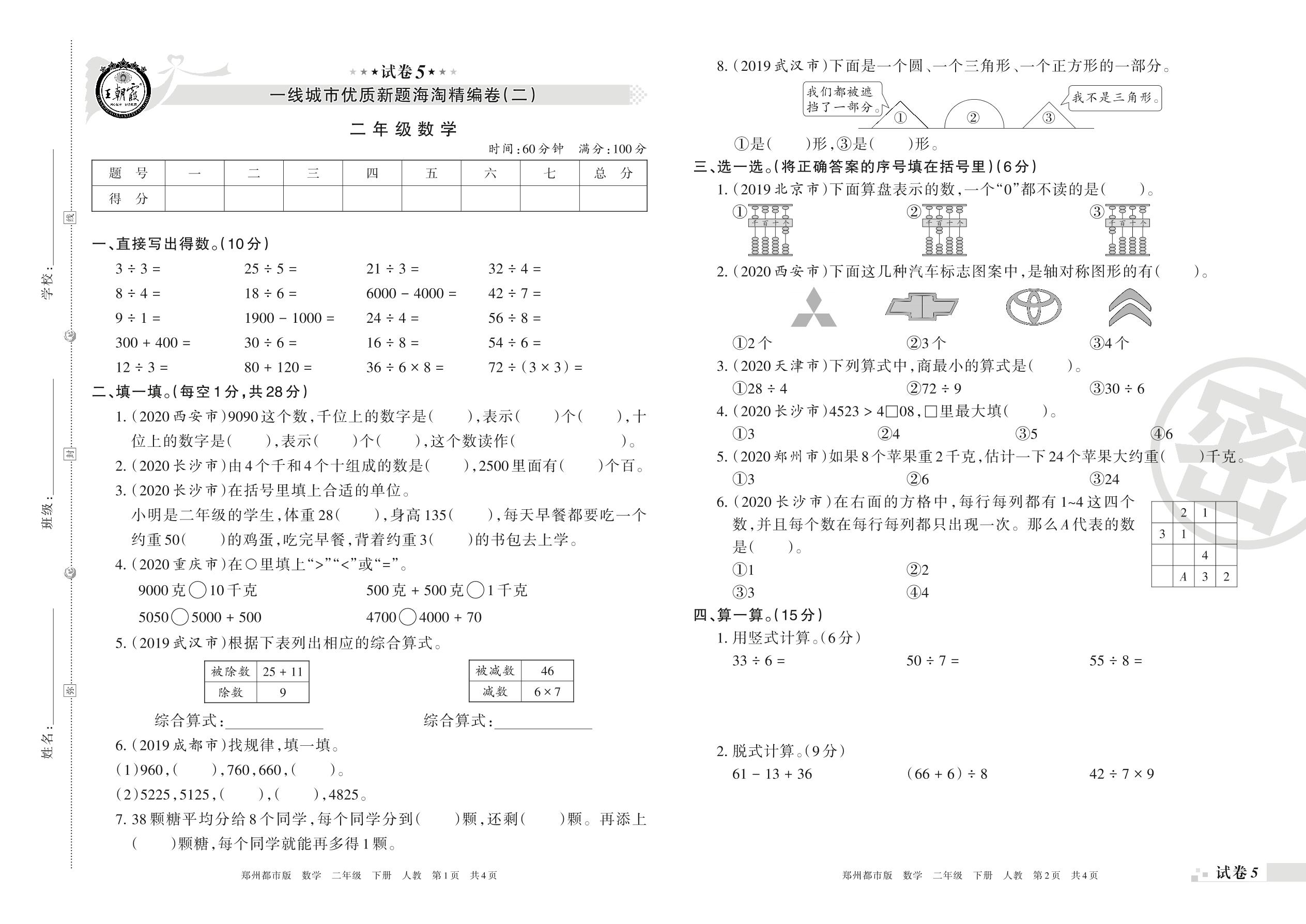 王朝霞海淘期末精编卷二年级下册数学(人教版)_R21080382121【5】
