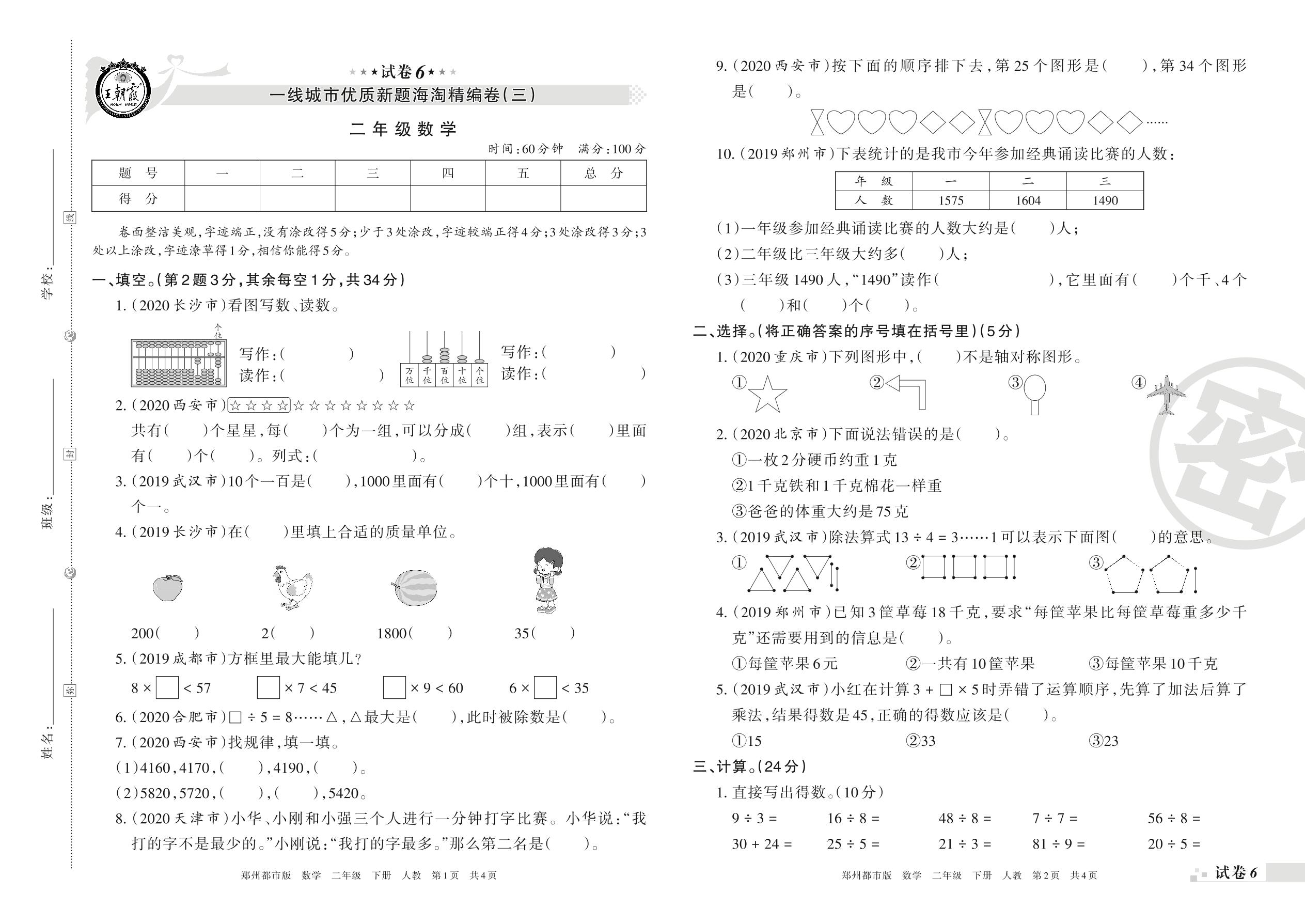 王朝霞海淘期末精编卷二年级下册数学(人教版)_R21080382125【6】