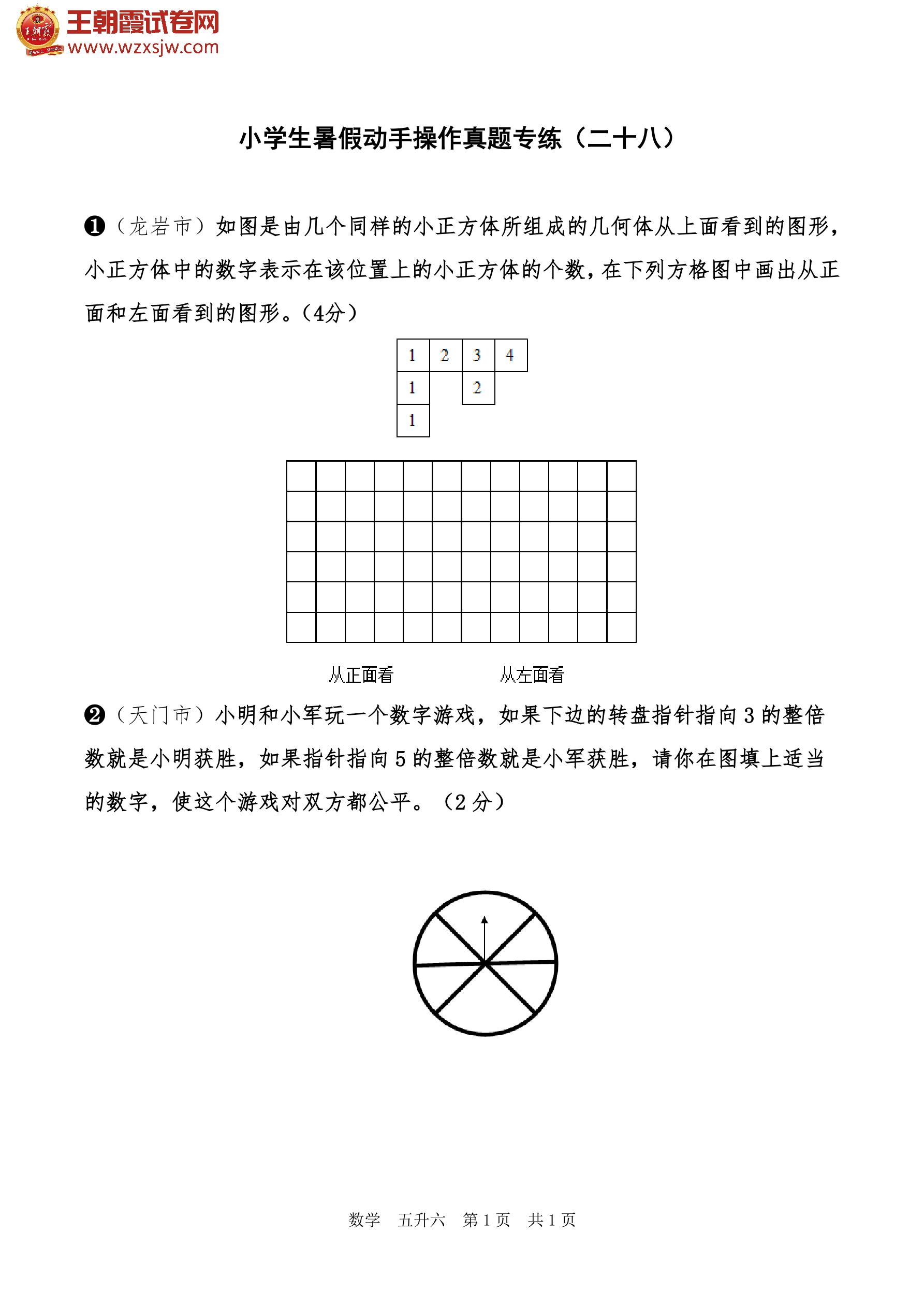【五升六】小学生暑假动手操作真题专练(二十八)