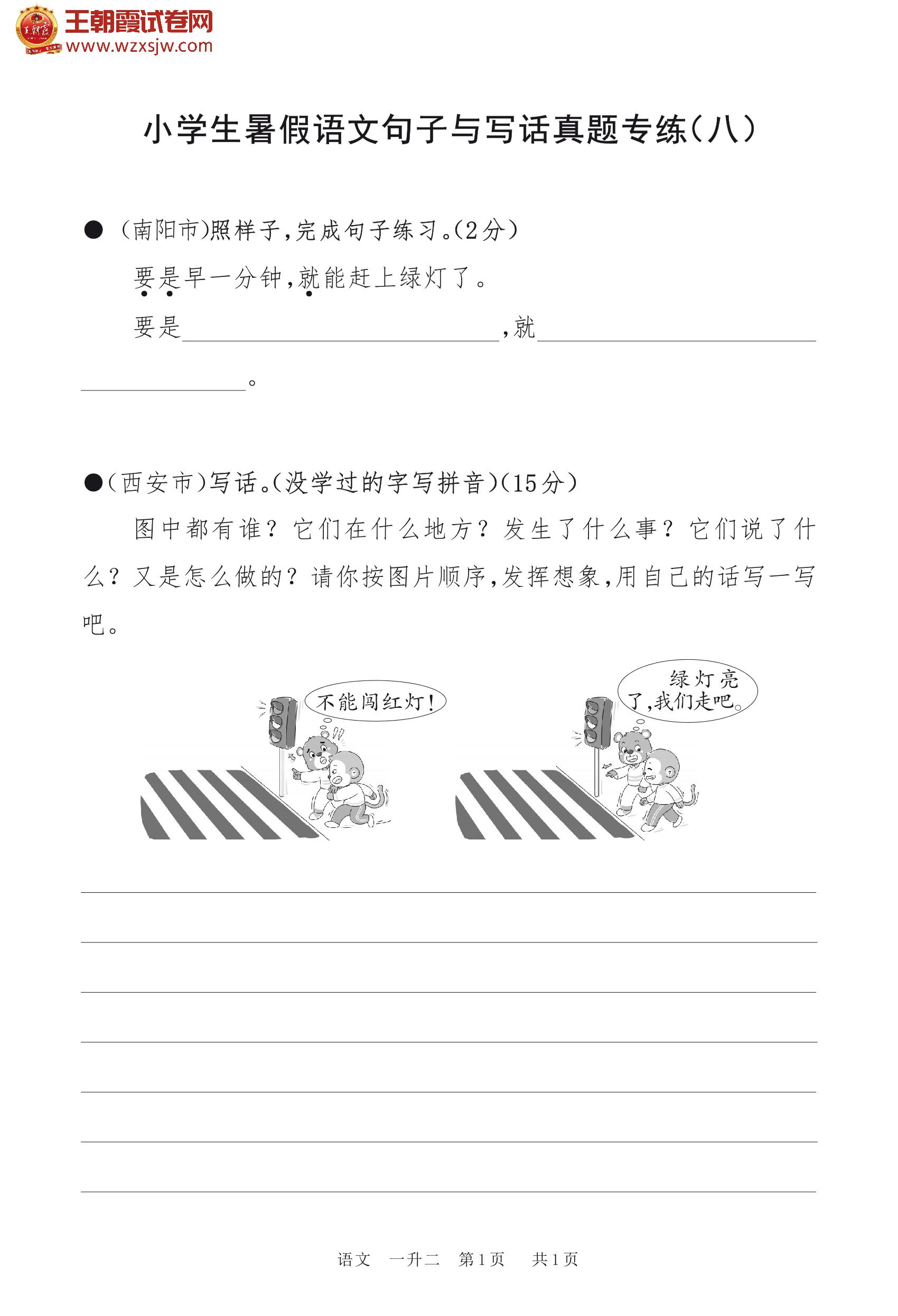 【一升二】小学生暑假语文句子与写话真题专练(八)