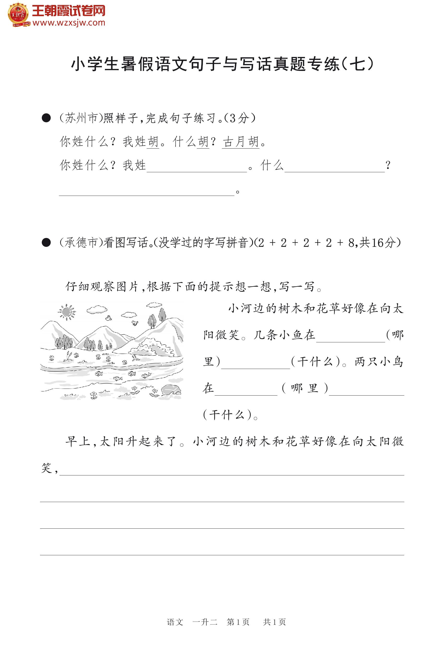 【一升二】小学生暑假语文句子与写话真题专练(七)