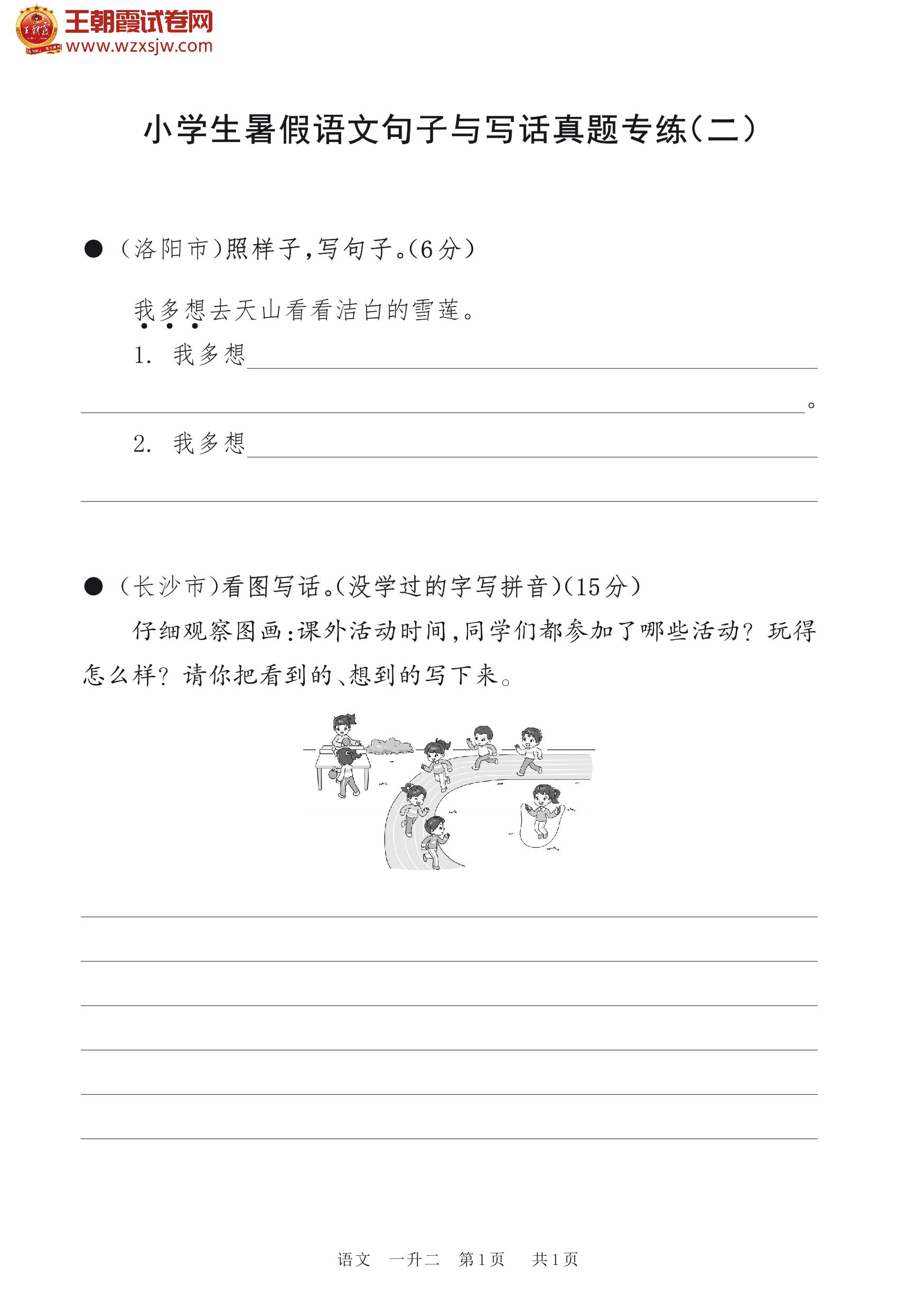 【一升二】小学生暑假语文句子与写话真题专练(二)