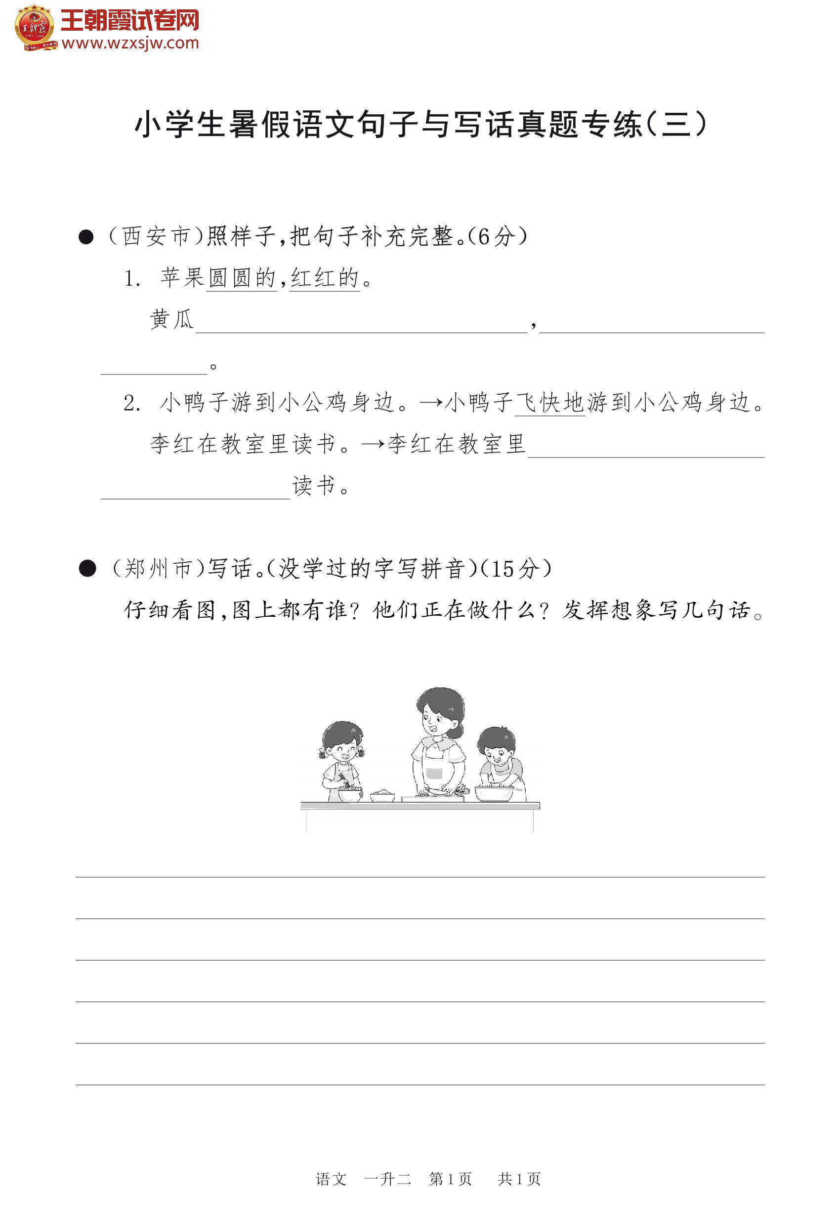 【一升二】小学生暑假语文句子与写话真题专练(三)