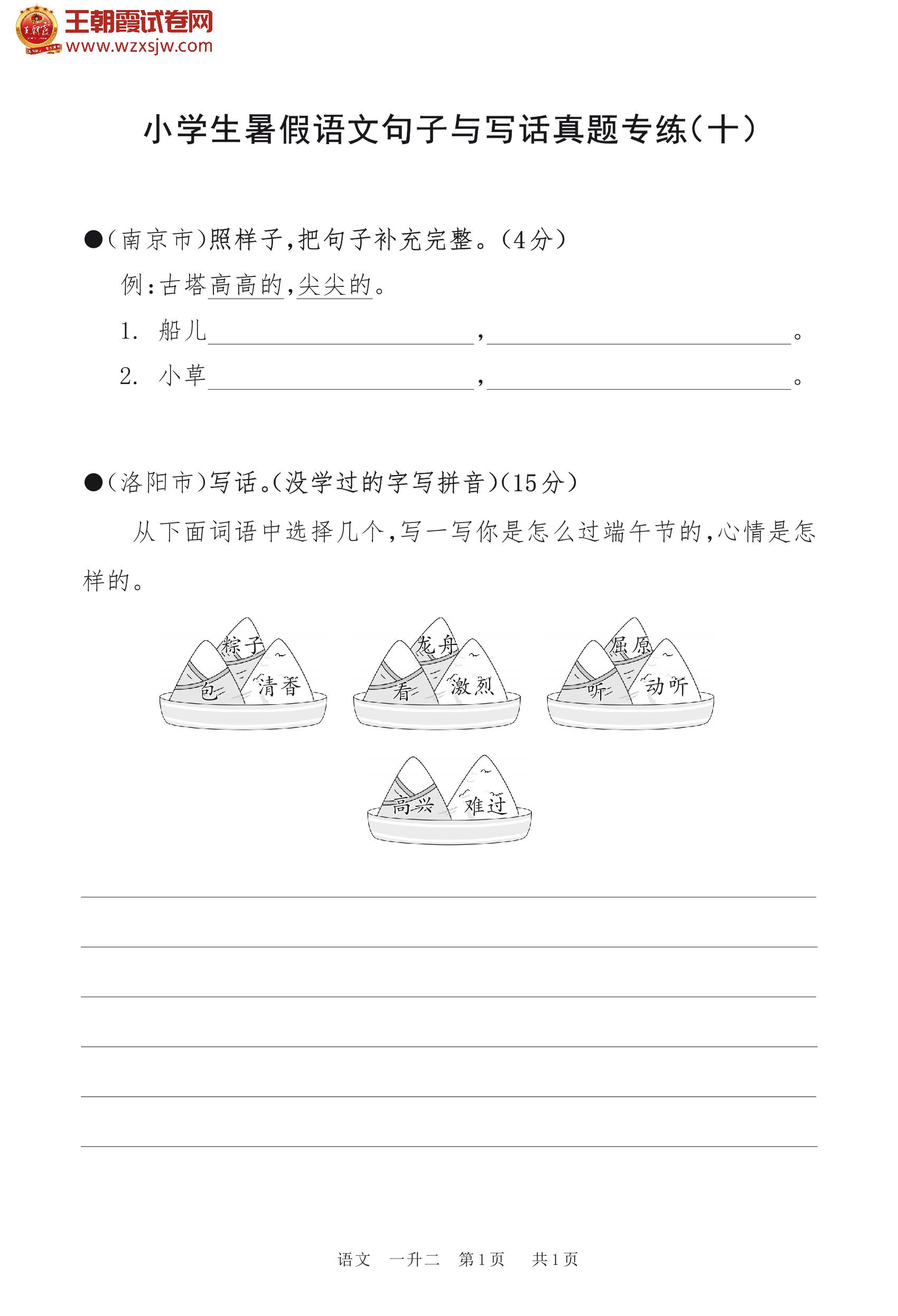 【一升二】小学生暑假语文句子与写话真题专练(十)