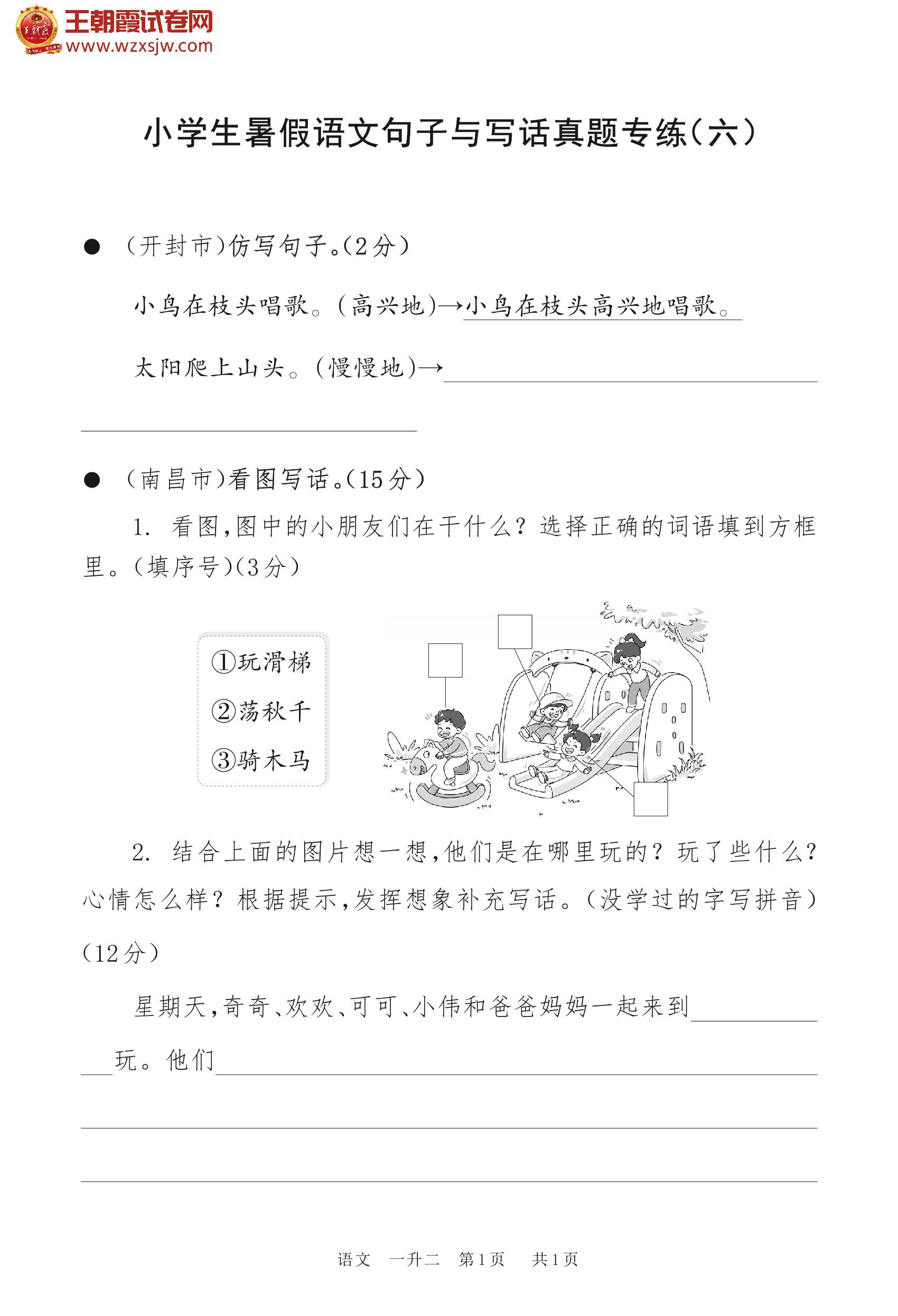 【一升二】小学生暑假语文句子与写话真题专练(六)