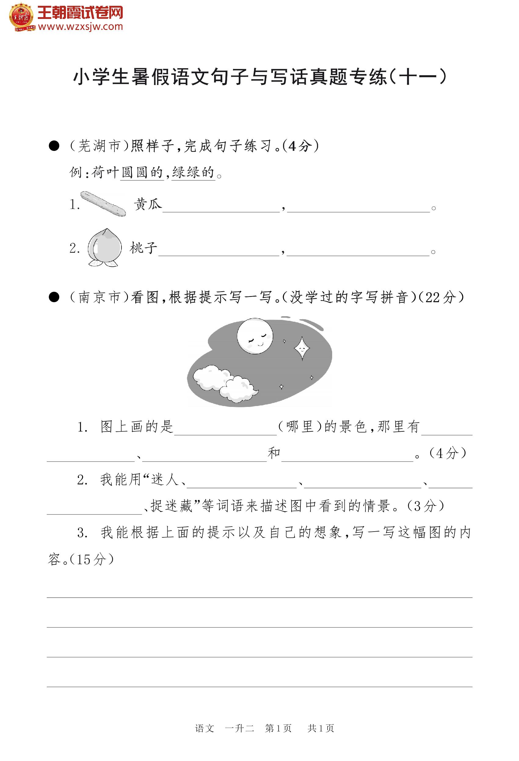 【一升二】小学生暑假语文句子与写话真题专练(十一)