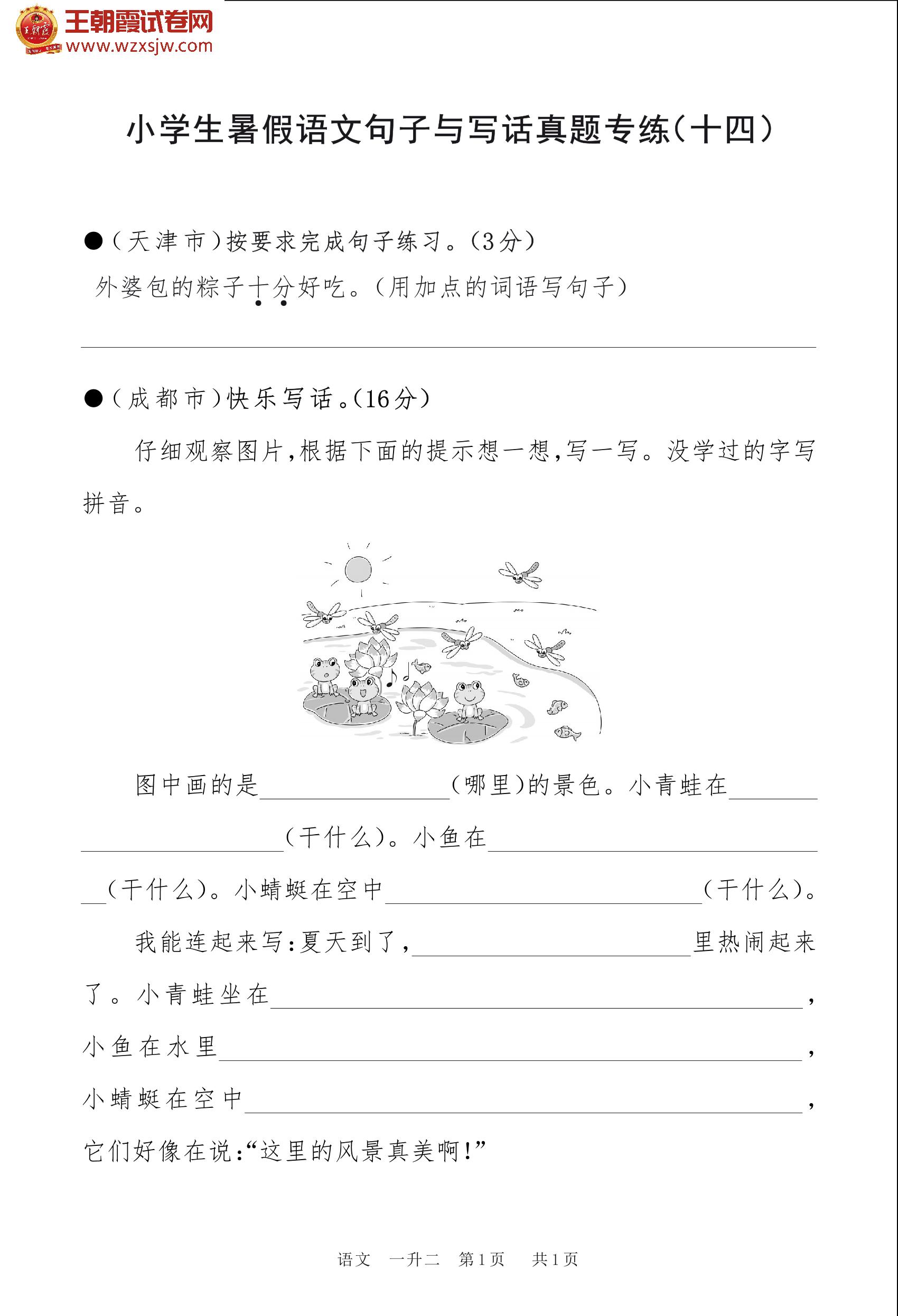 【一升二】小学生暑假语文句子与写话真题专练(十四)