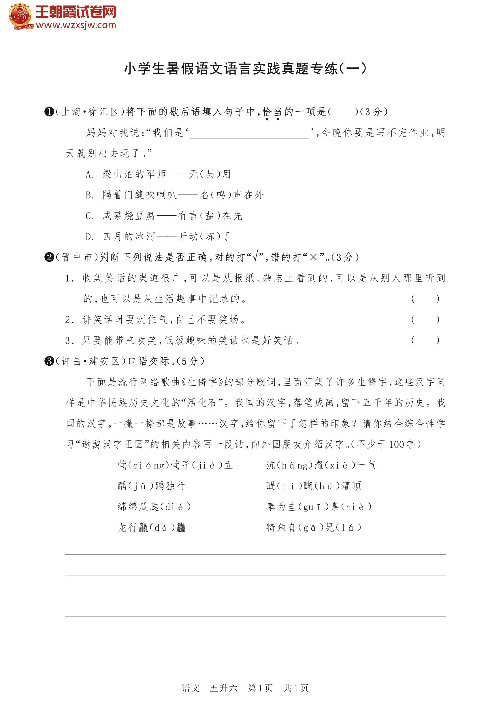 【五升六】小学生暑假语文语言实践真题专练(一)