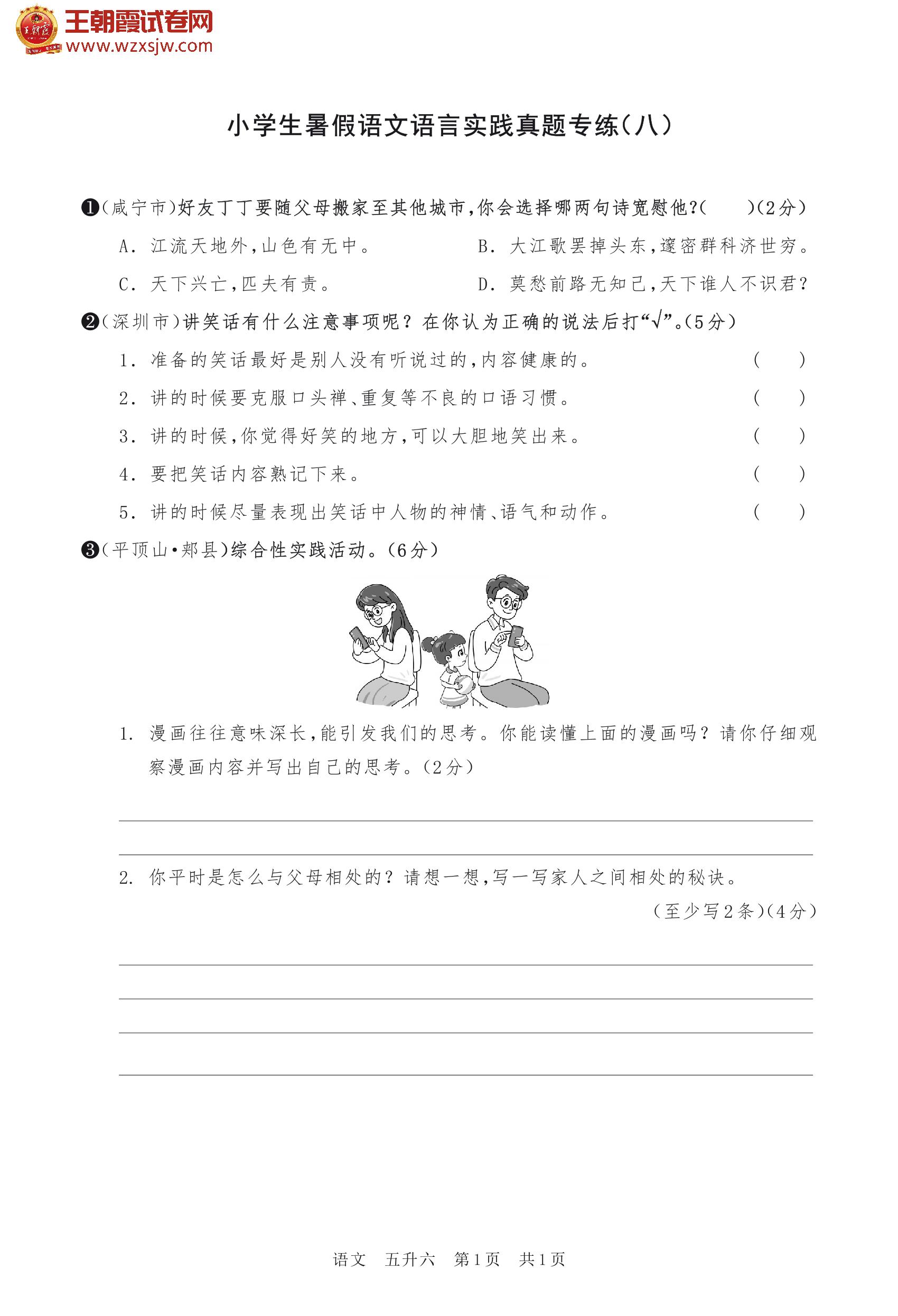 【五升六】小学生暑假语文语言实践真题专练(八)