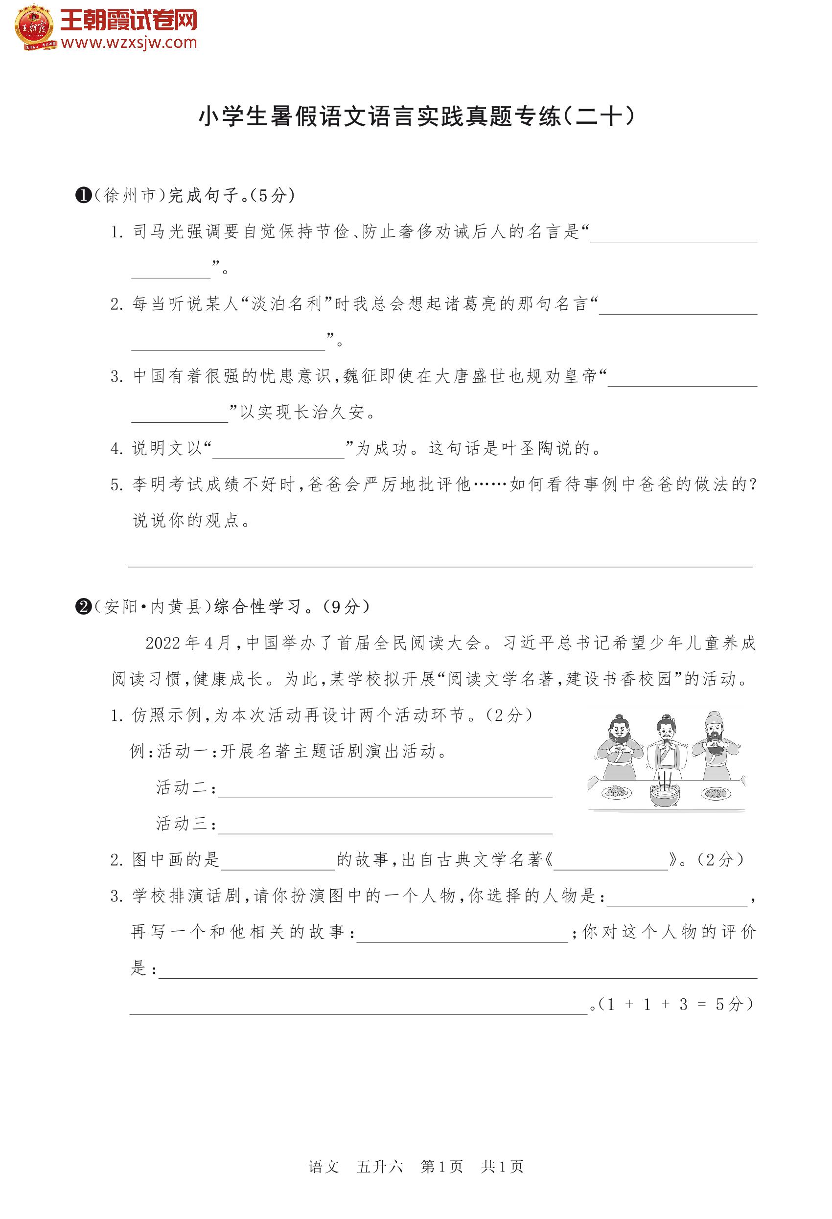 【五升六】小学生暑假语文语言实践真题专练(二十)