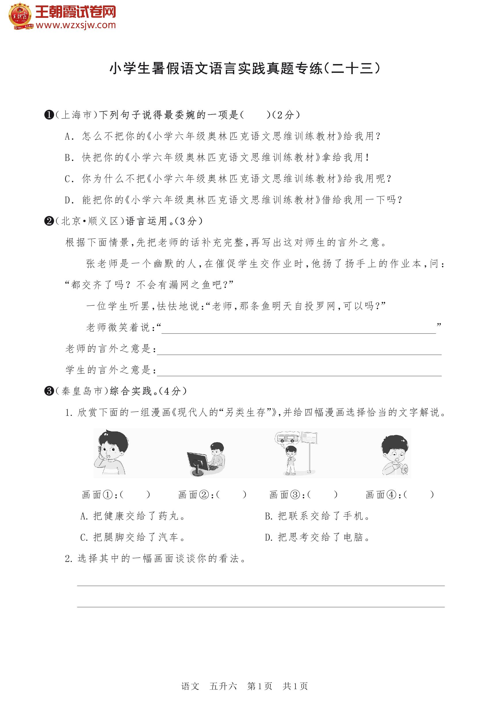 【五升六】小学生暑假语文语言实践真题专练(二十三)