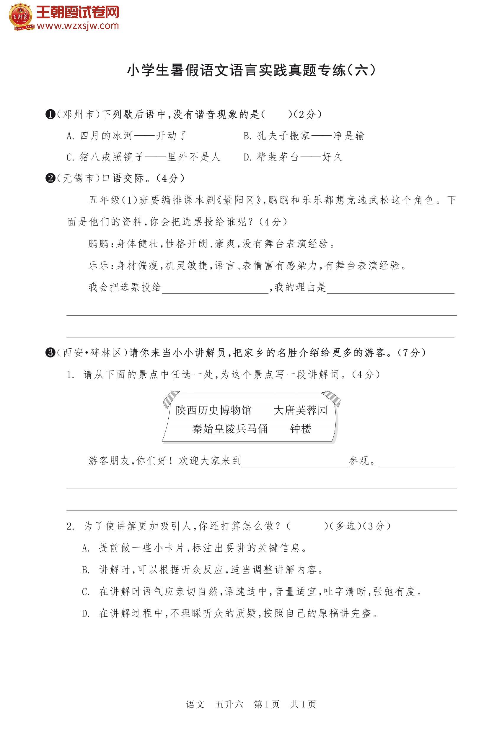 【五升六】小学生暑假语文语言实践真题专练(六)