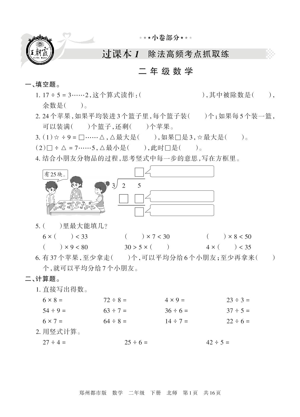 王朝霞期末过课本二年级下册数学(北师版)_R21080382143【0】