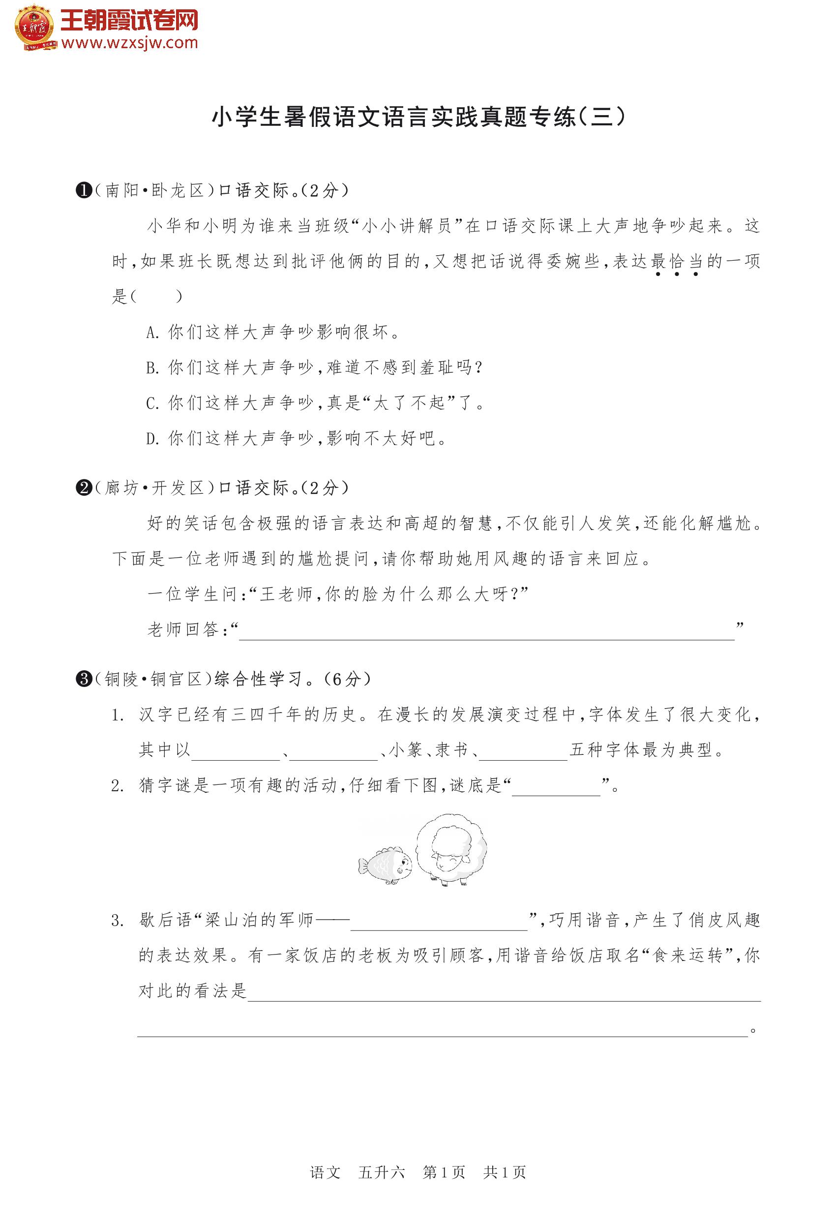 【五升六】小学生暑假语文语言实践真题专练(三)