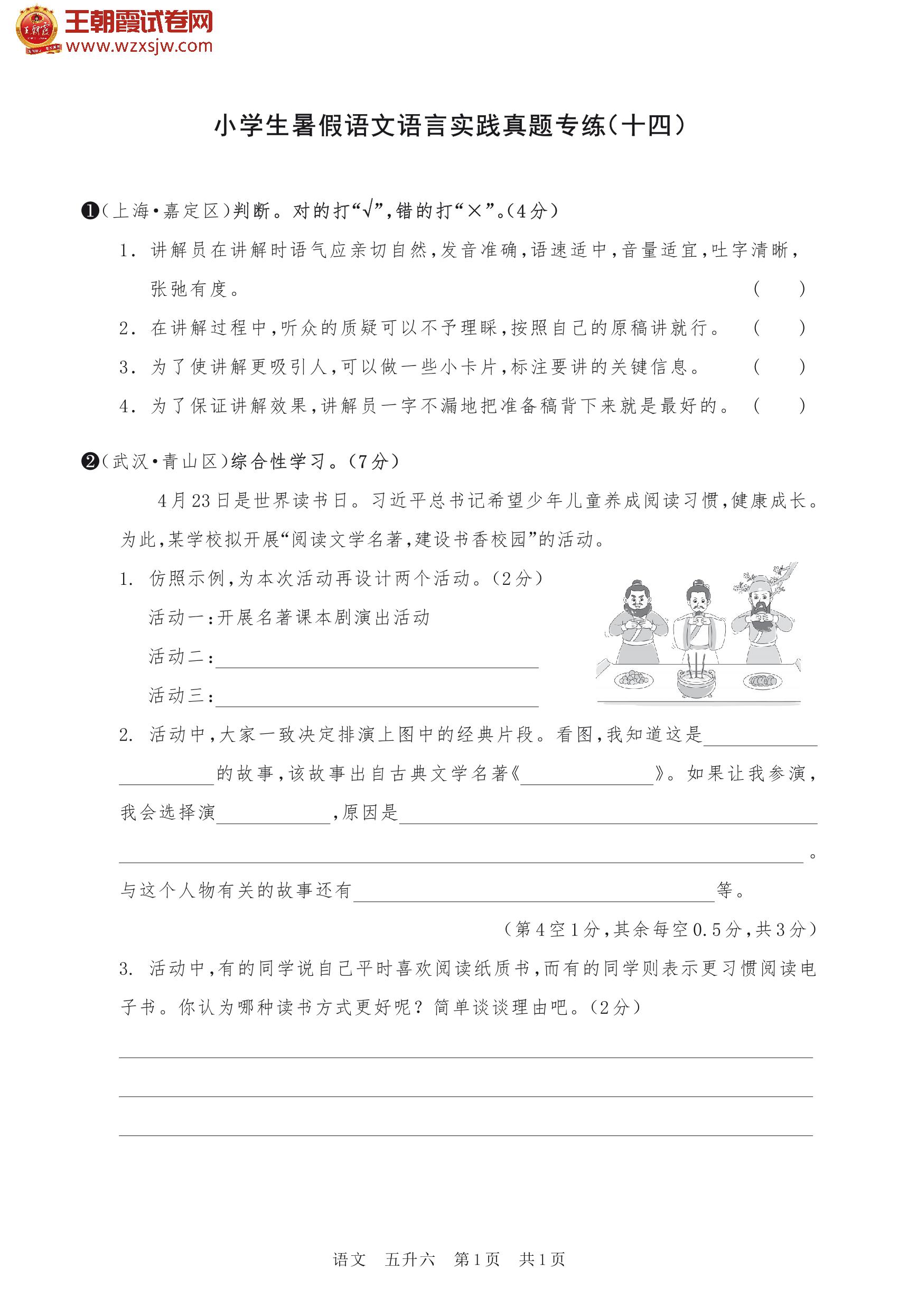 【五升六】小学生暑假语文语言实践真题专练(十四)
