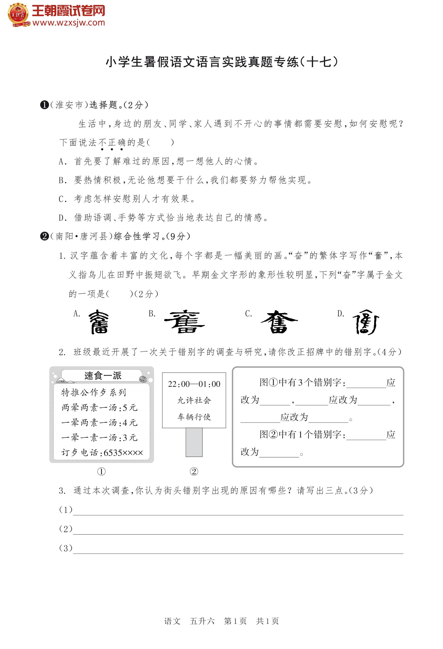 【五升六】小学生暑假语文语言实践真题专练(十七)