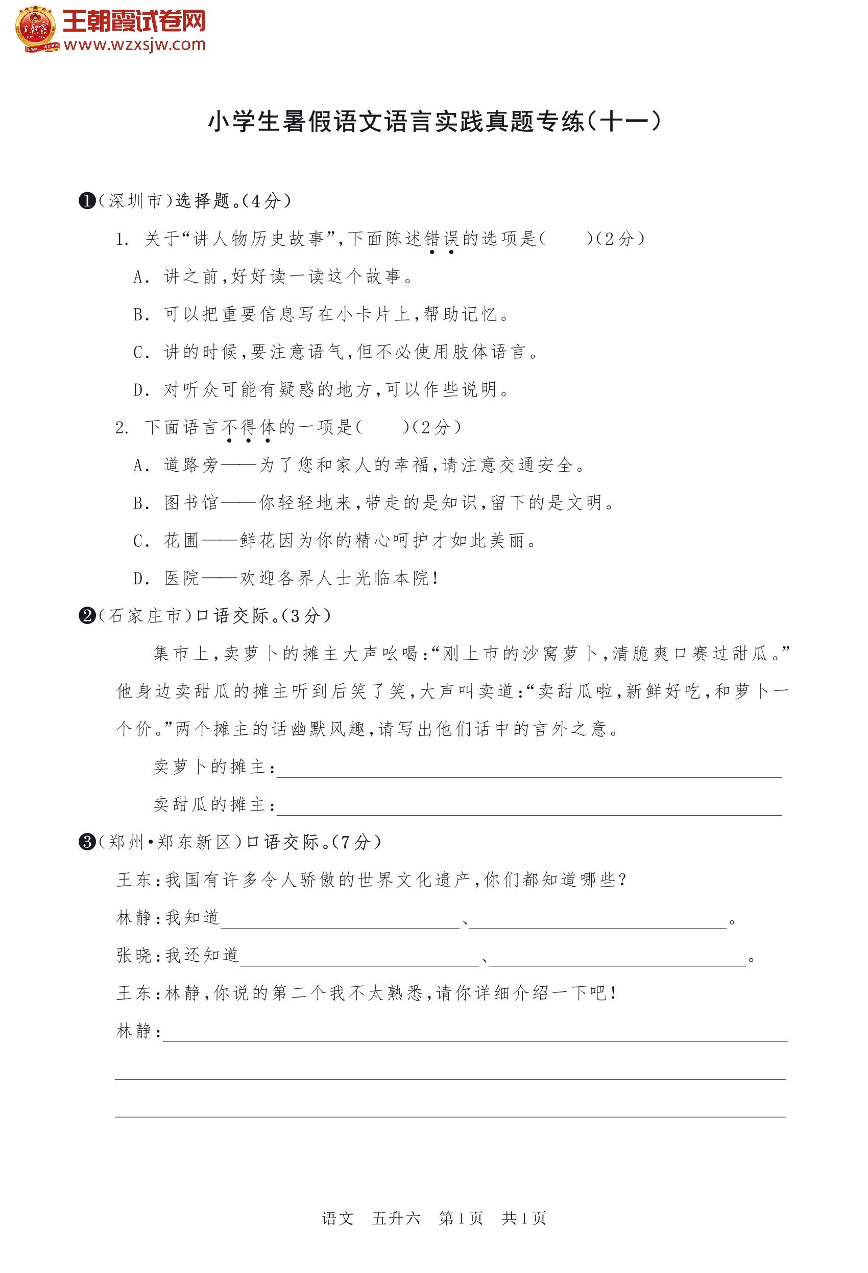 【五升六】小学生暑假语文语言实践真题专练(十一)