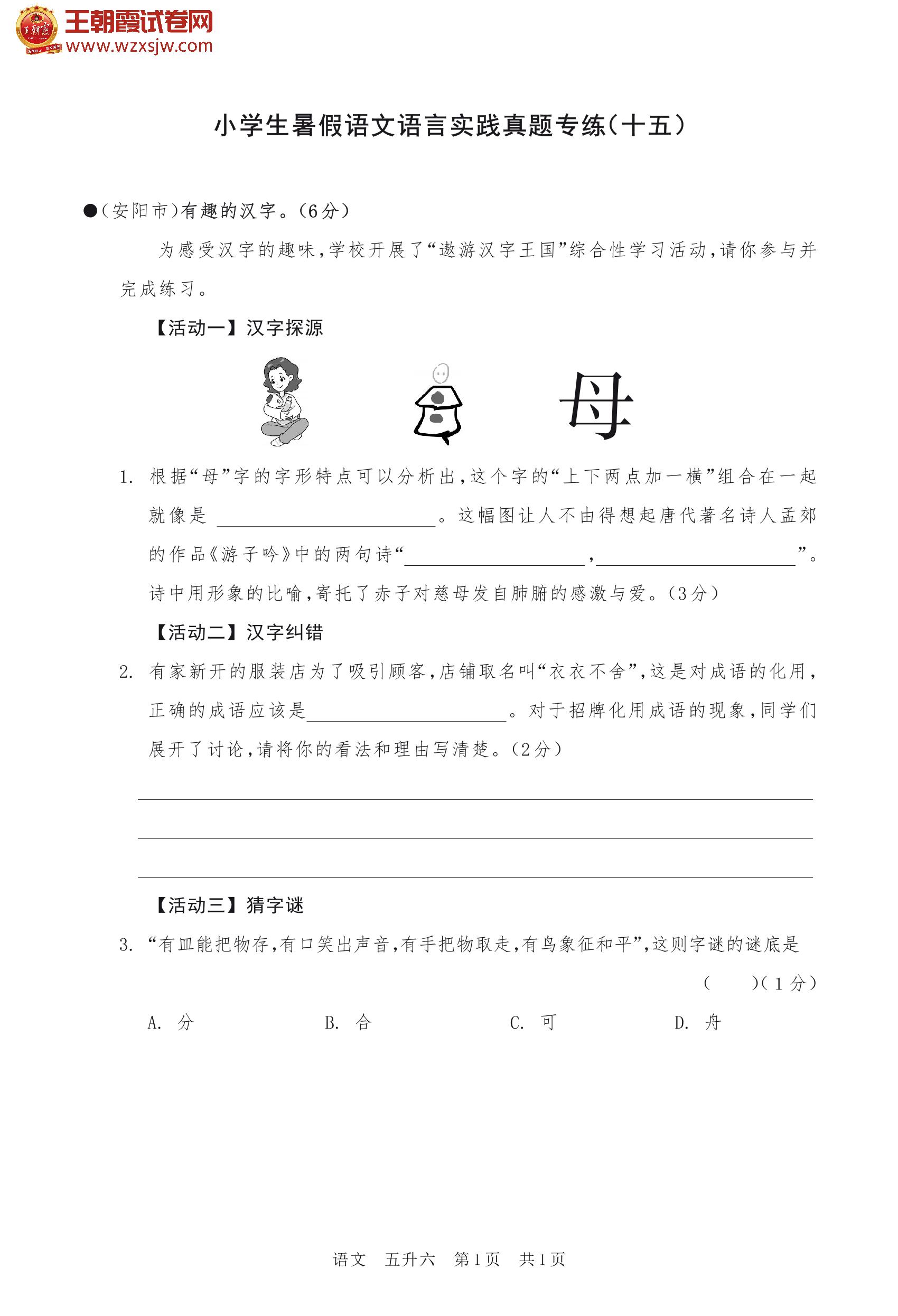 【五升六】小学生暑假语文语言实践真题专练(十五)
