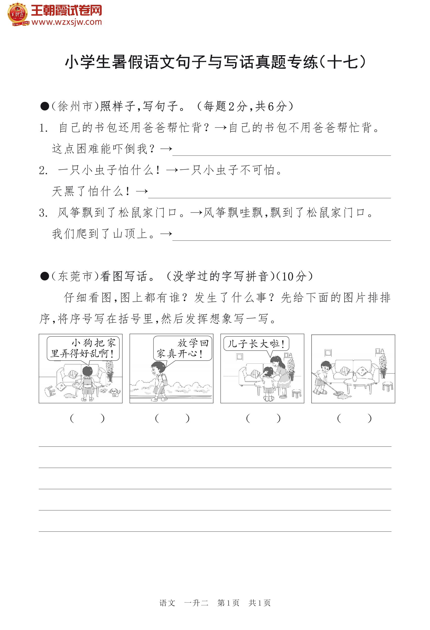 【一升二】小学生暑假语文句子与写话真题专练(十七)