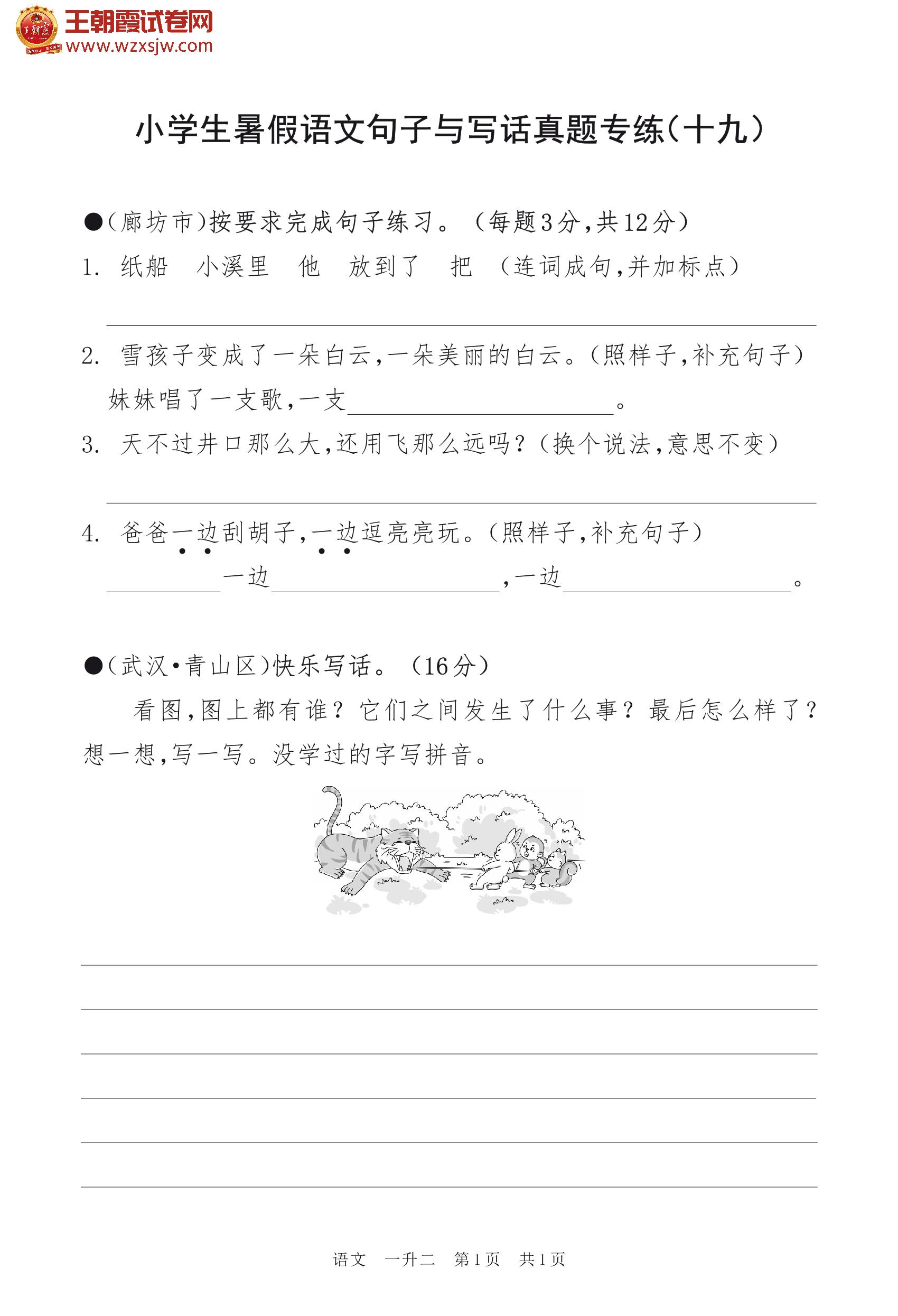 【一升二】小学生暑假语文句子与写话真题专练(十九)