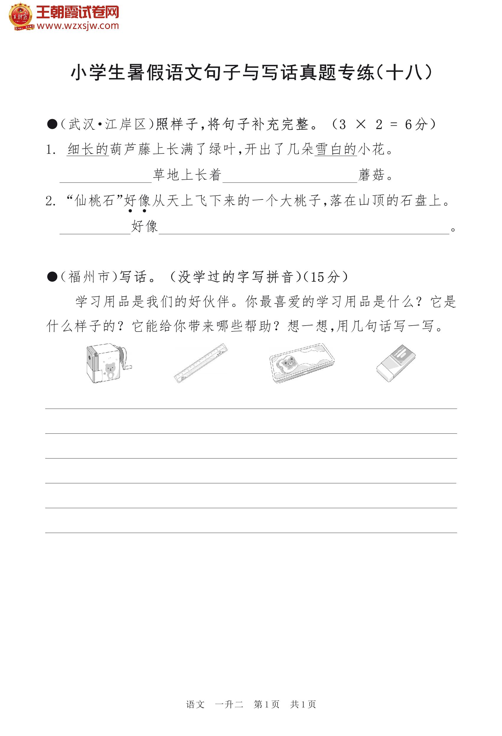 【一升二】小学生暑假语文句子与写话真题专练(十八)