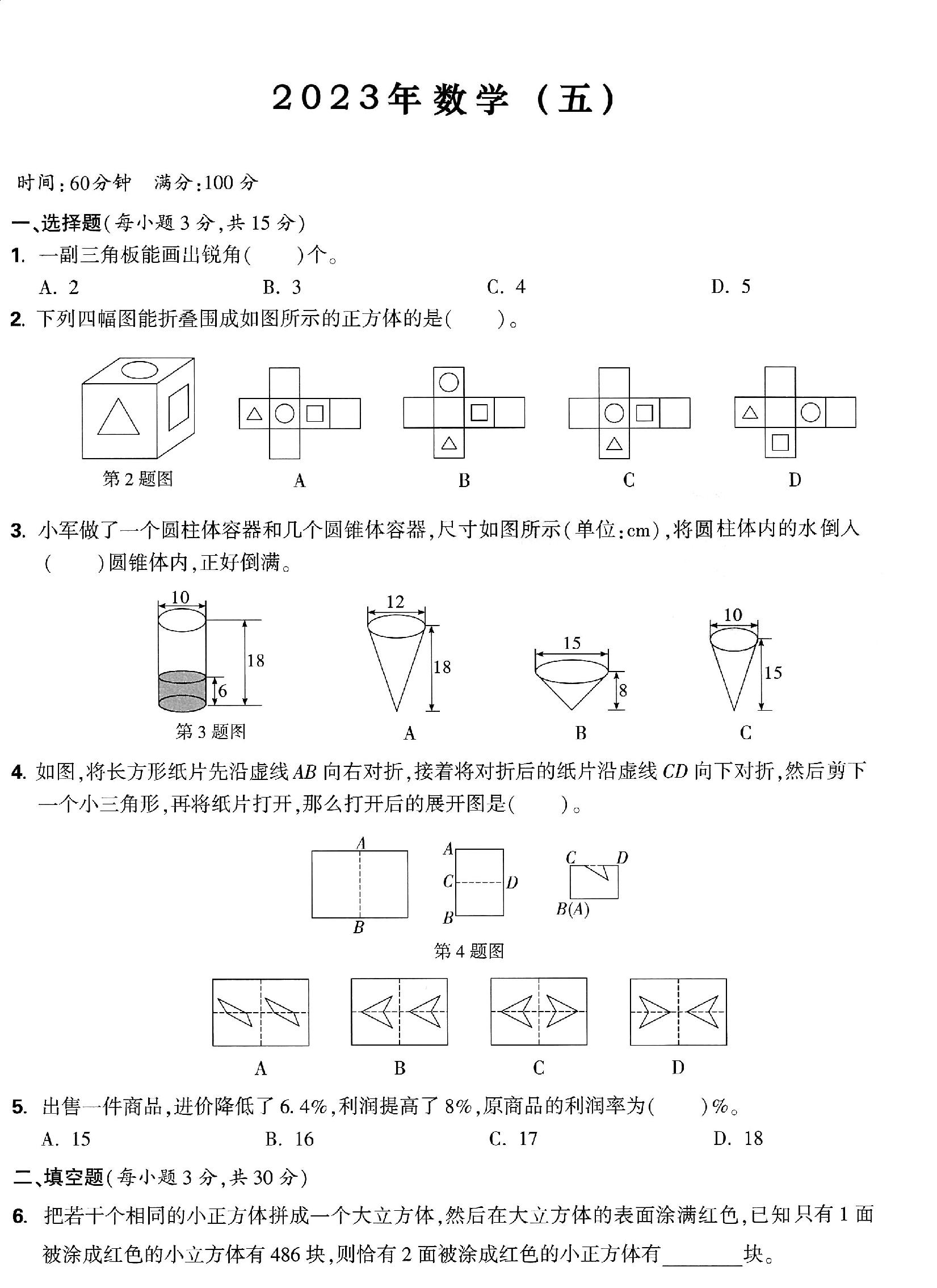 2023年 LY23ZX 小升初入学考试数学真卷(五)