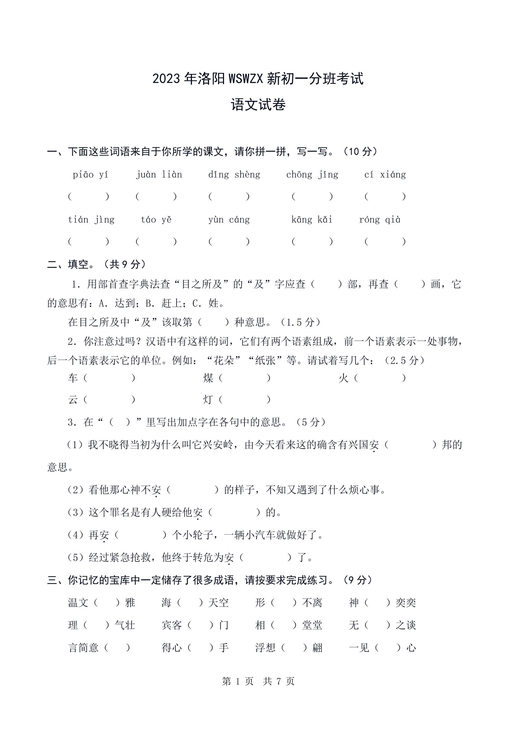 2023年洛阳WSWZX新初一分班