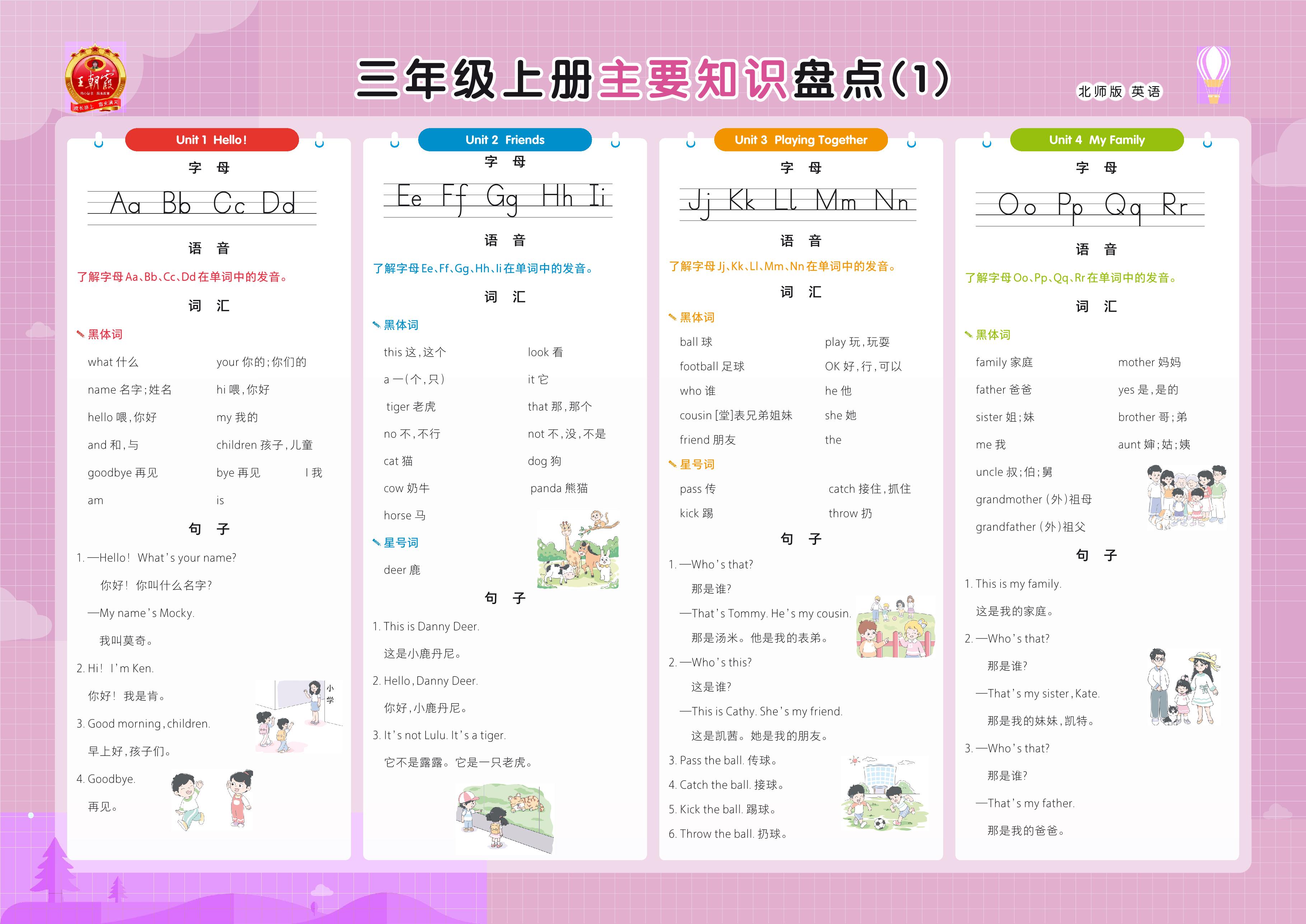 三年级英语北师版上册知识梳理