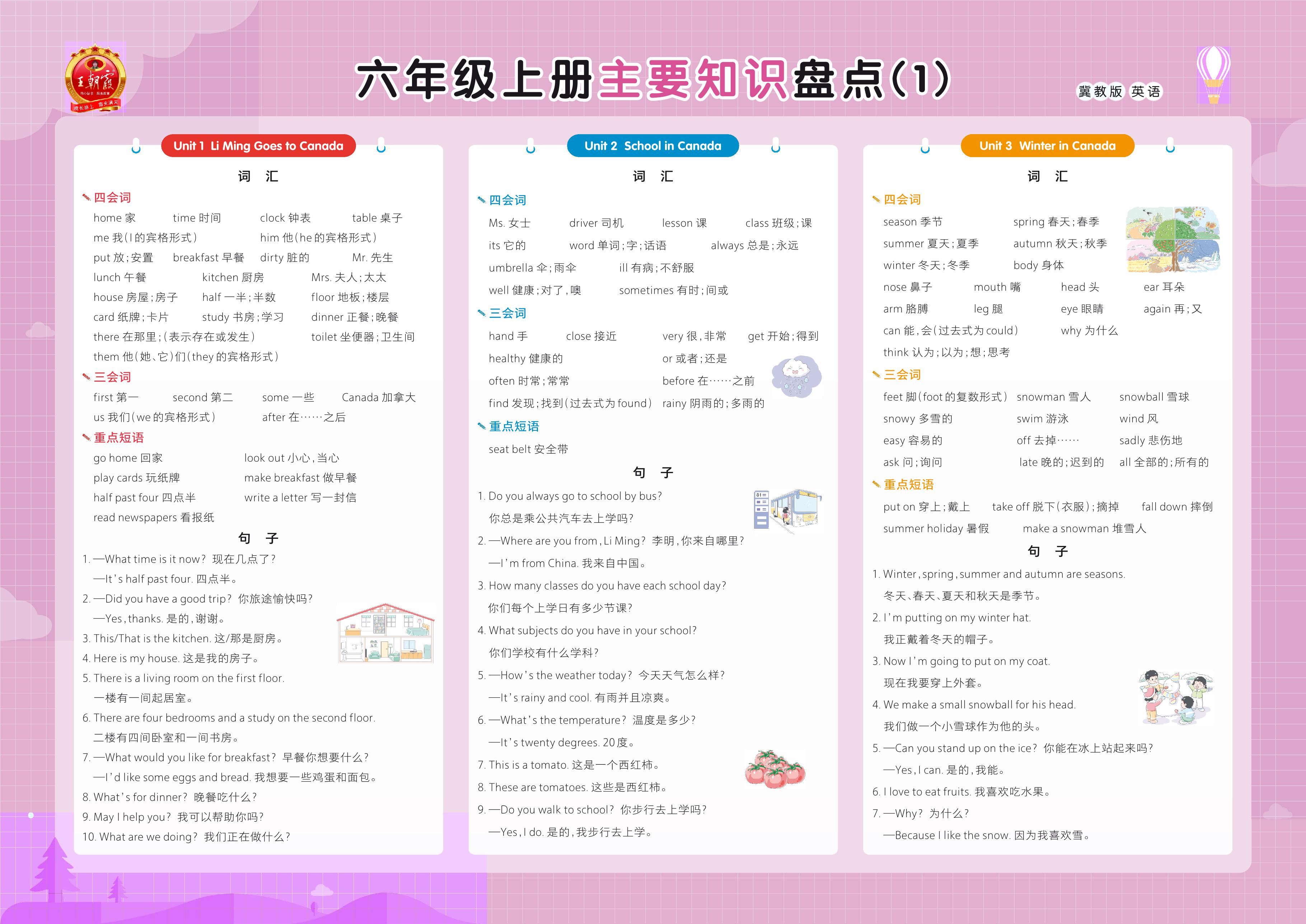 六年级英语冀教版上册知识梳理