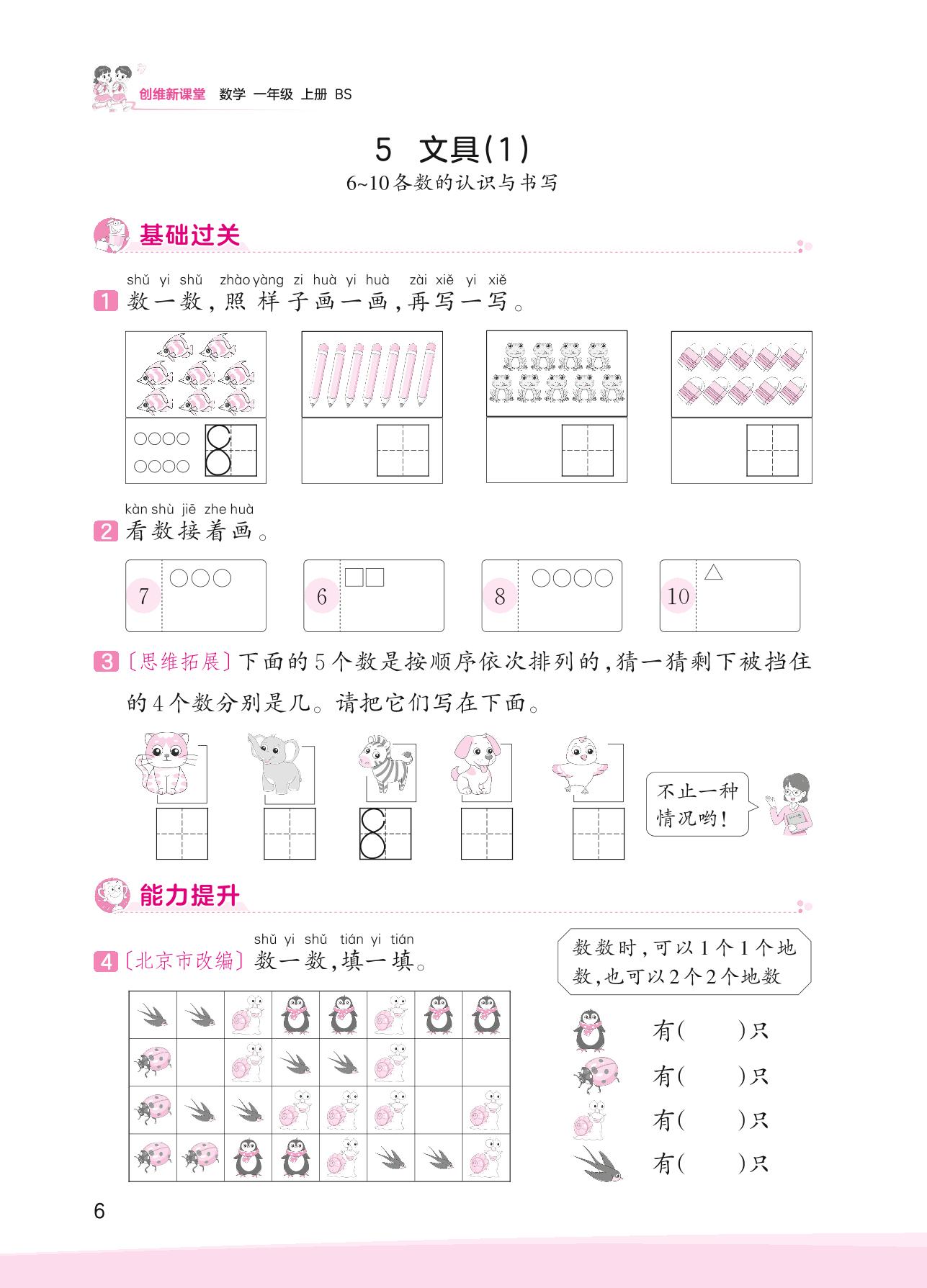 2023上册一年级数学北师版 一 生活中的数——5 文具(1)