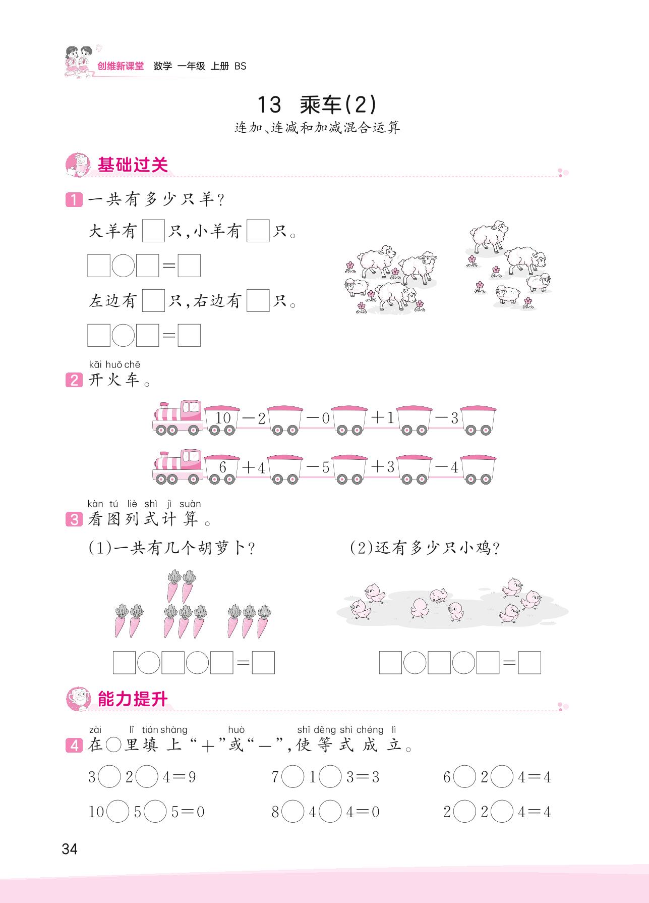 2023上册一年级数学北师版 三 加与减(一)——13 乘车(2)