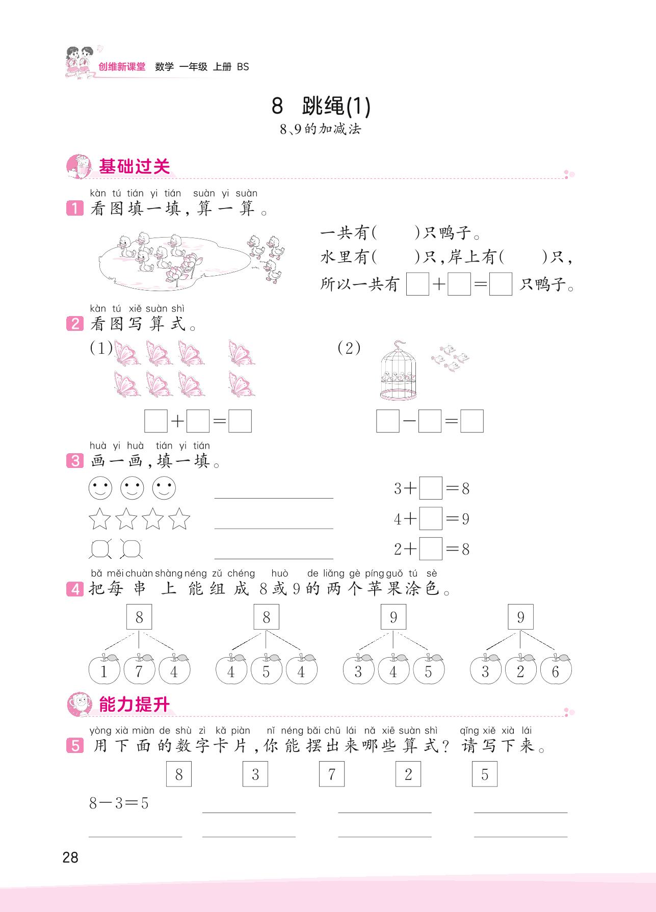 2023上册一年级数学北师版 三 加与减(一)——8 跳绳(1)