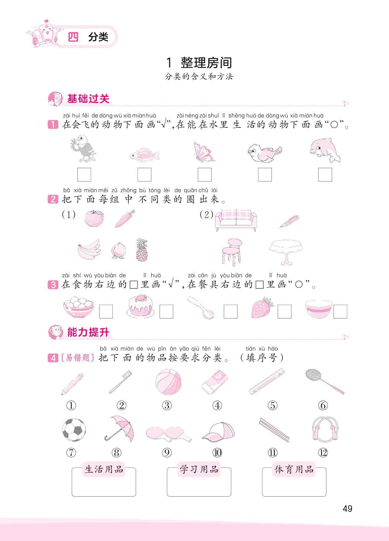2023上册一年级数学北师版 四 分类——1 整理房间
