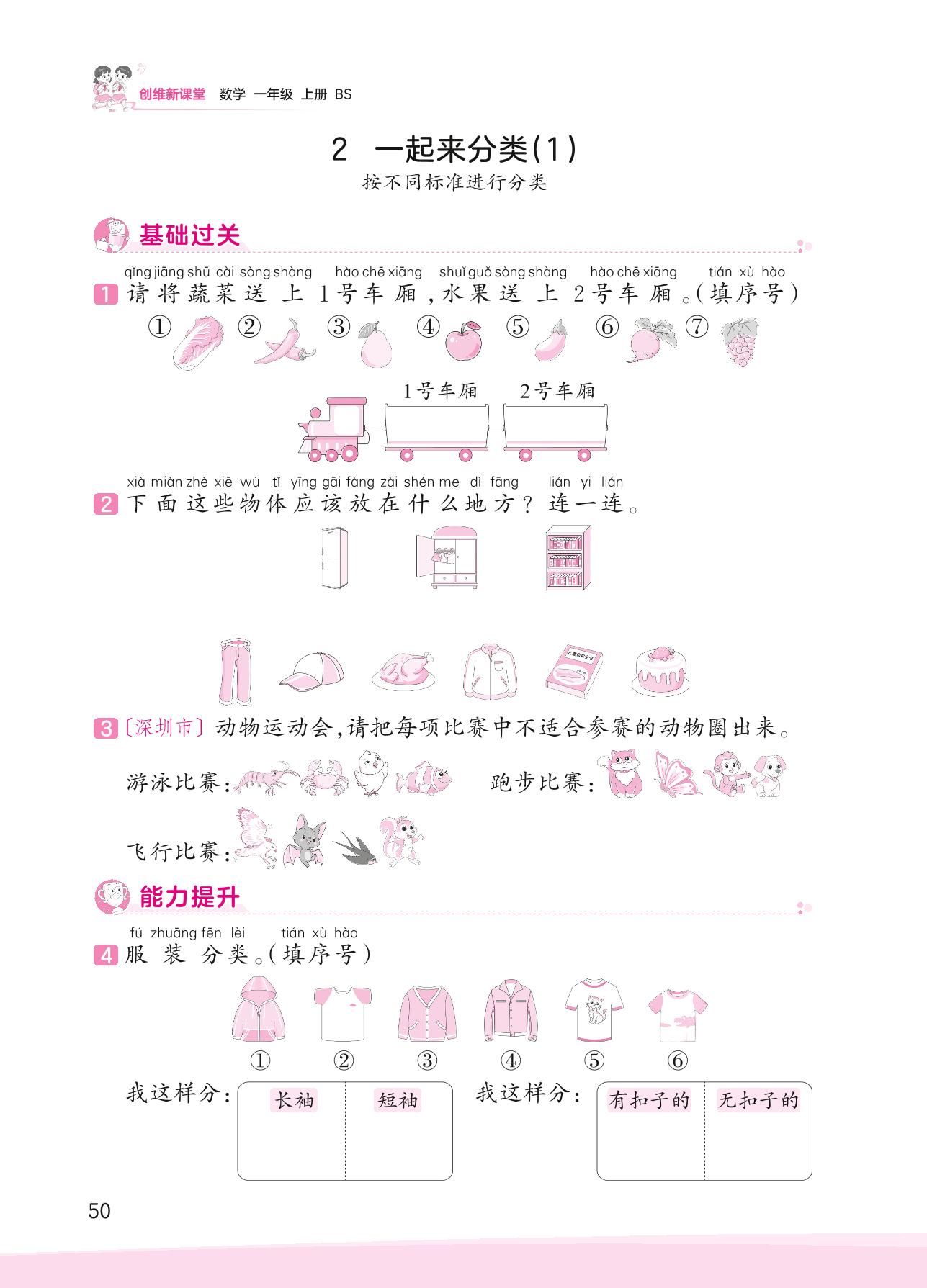 2023上册一年级数学北师版 四 分类——2 一起来分类(1)