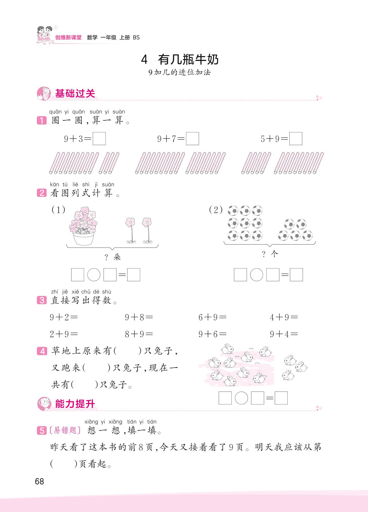 2023上册一年级数学北师版 七 加与减(二)——4 有几瓶牛奶