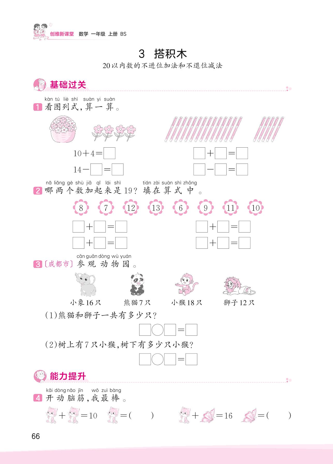 2023上册一年级数学北师版 七 加与减(二)——3 搭积木