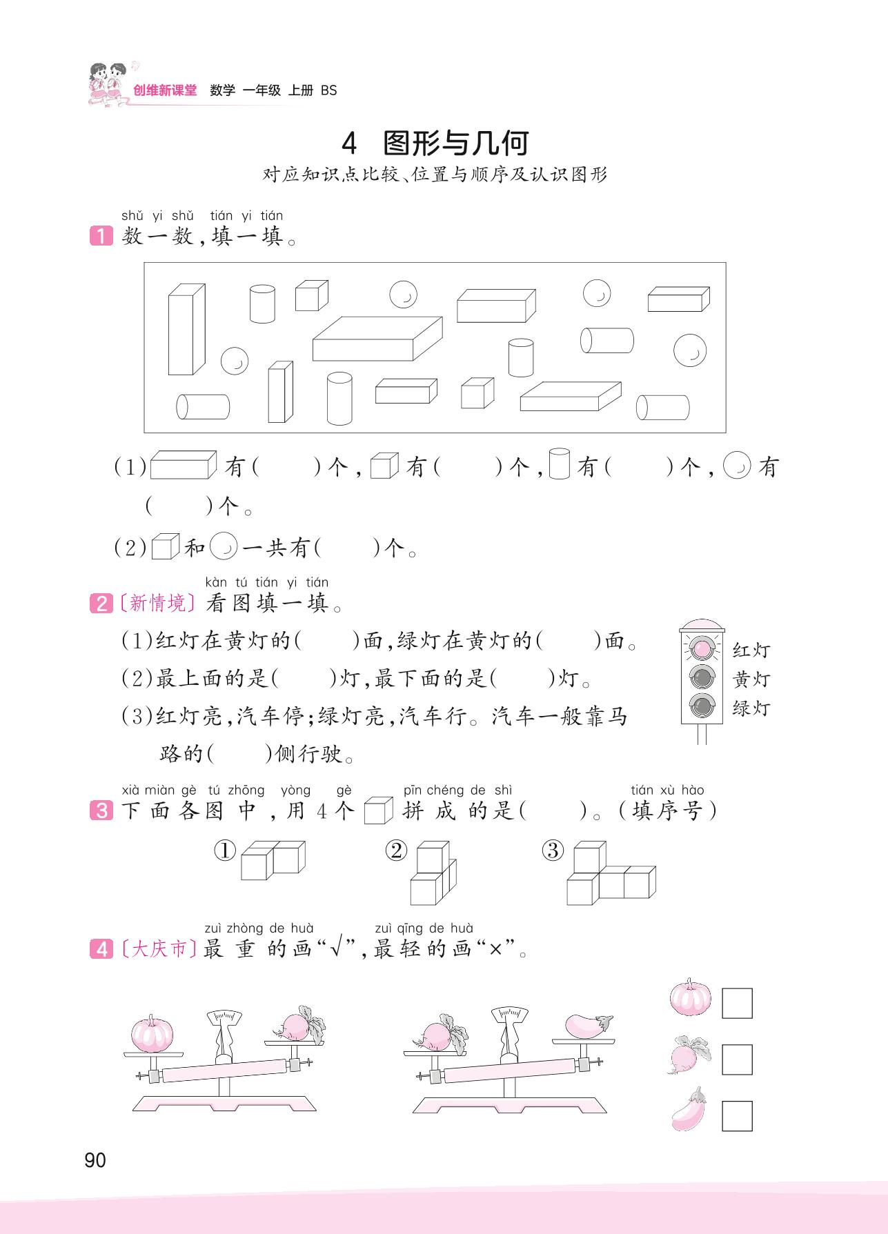 2023上册一年级数学北师版 总复习——4 图形与几何