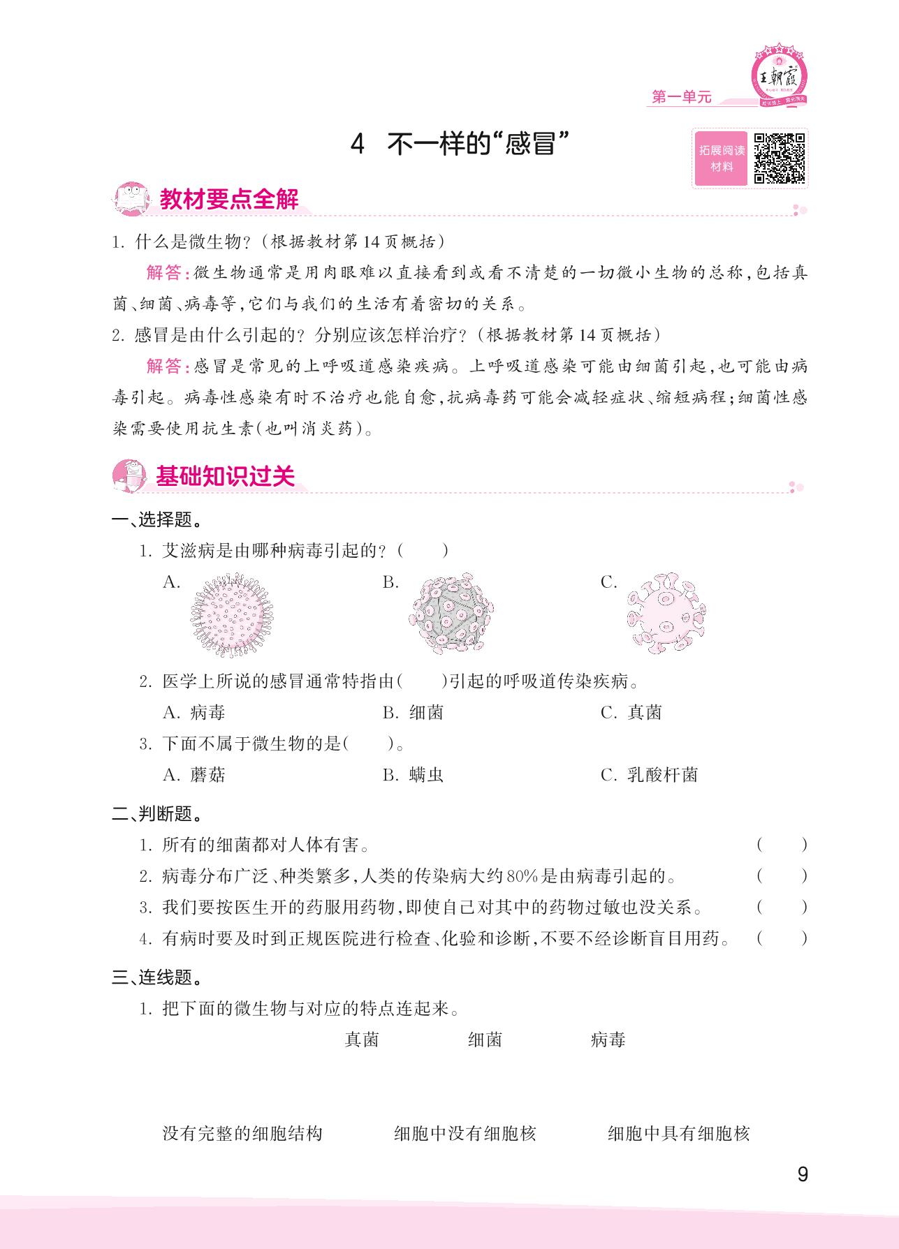 2023上册六年级科学大象版 第一单元 显微镜下的世界——4 不一样的“感冒”