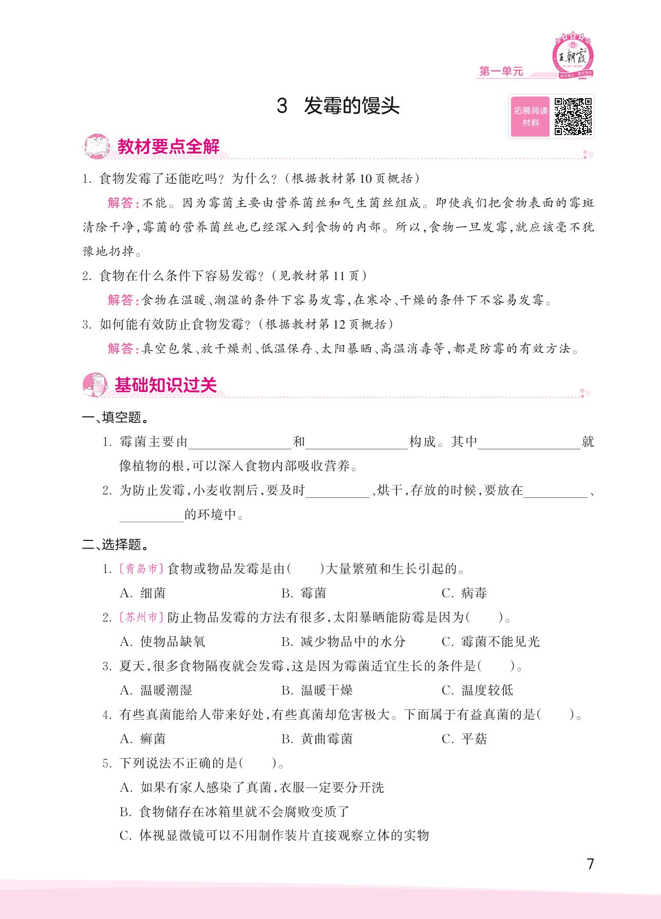 2023上册六年级科学大象版 第一单元 显微镜下的世界——3 发霉的馒头