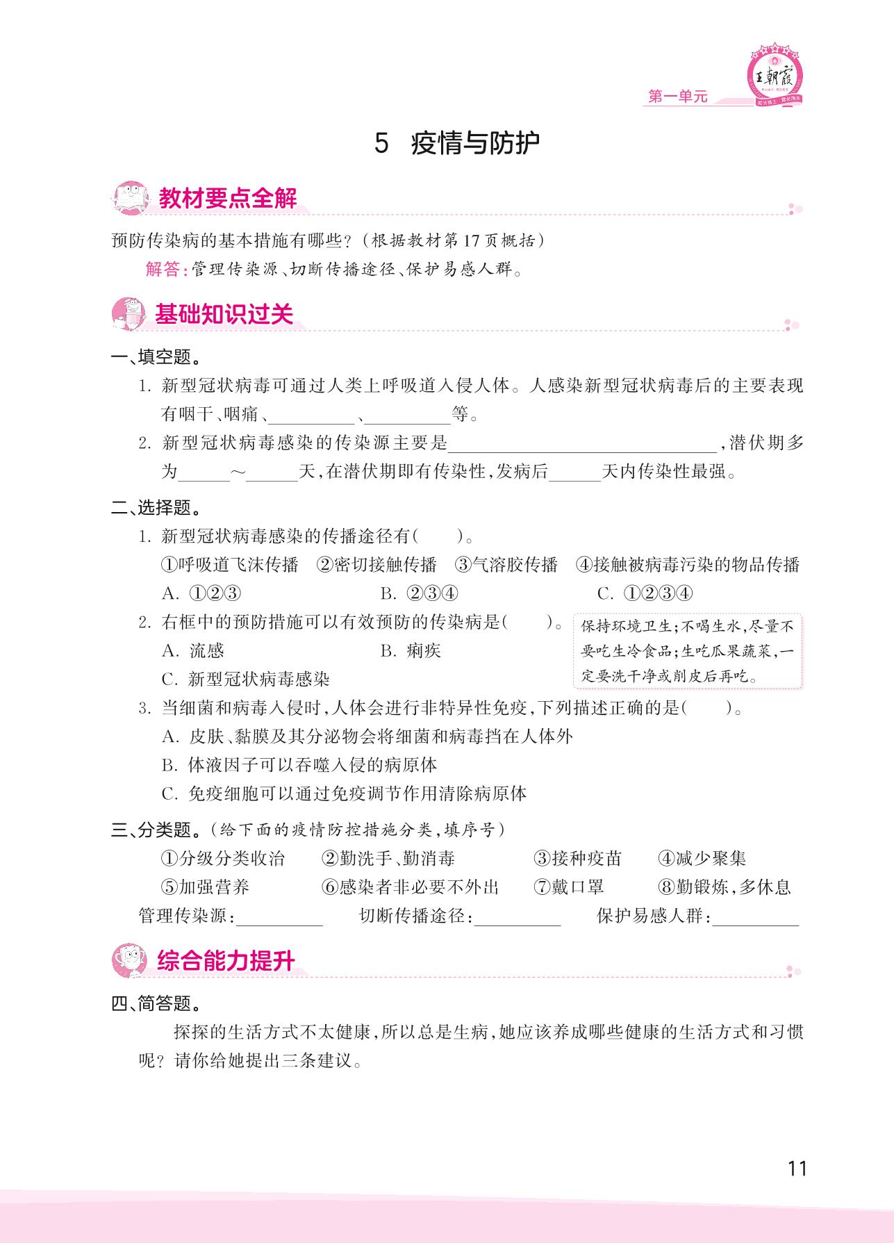 2023上册六年级科学大象版 第一单元 显微镜下的世界——5 疫情与防护