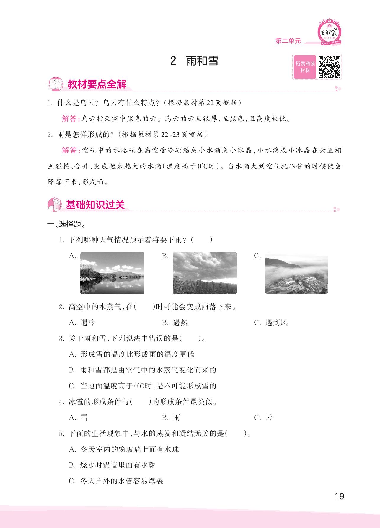 2023上册六年级科学大象版 第二单元 循环的水——2 雨和雪